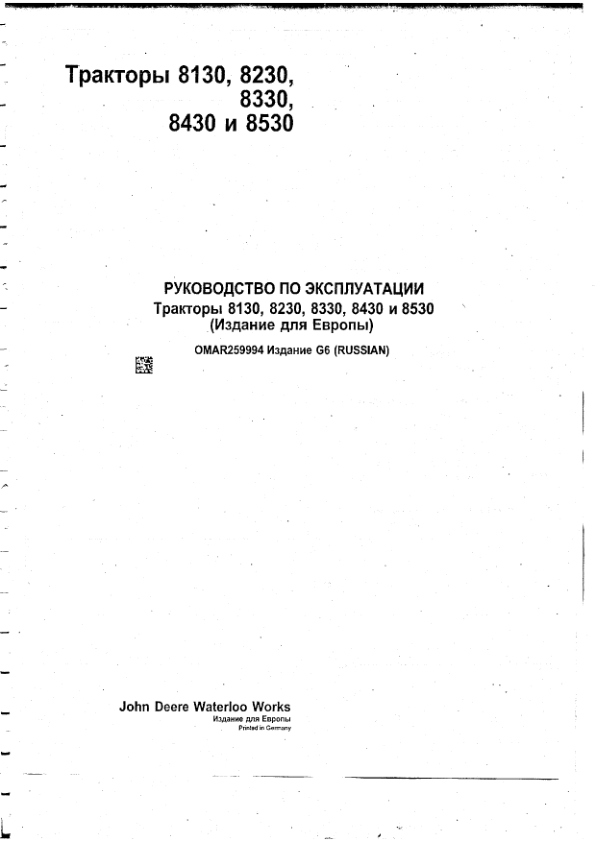 John Deere 8130 8230 8330 8430 8530 Tractors Operators Manual RU