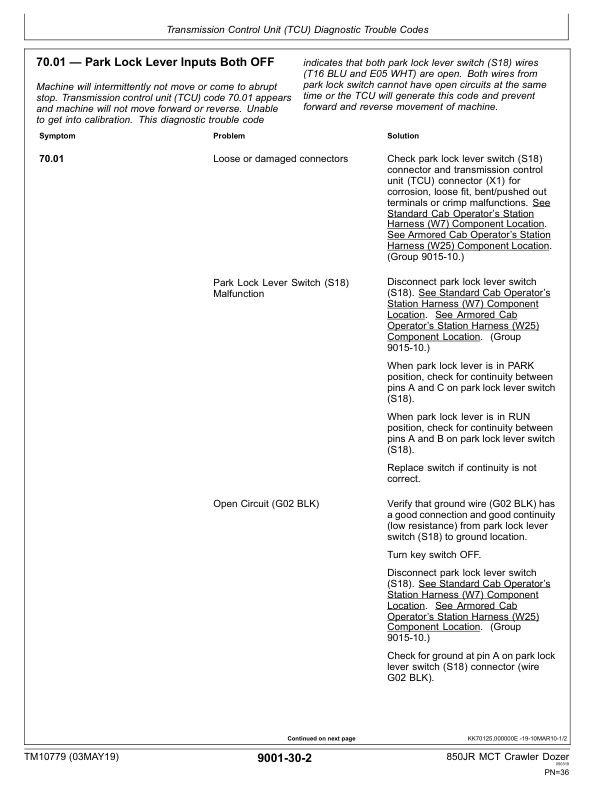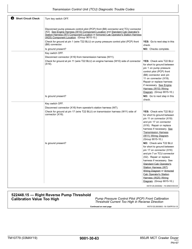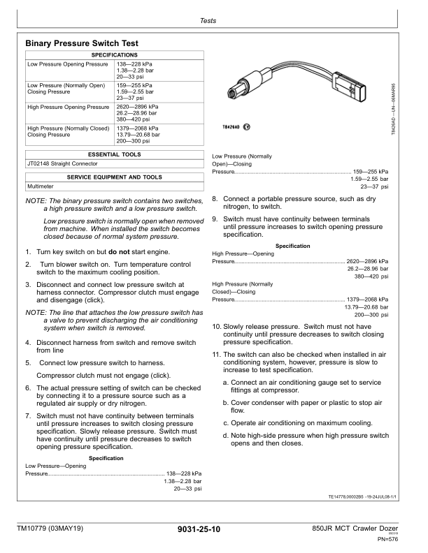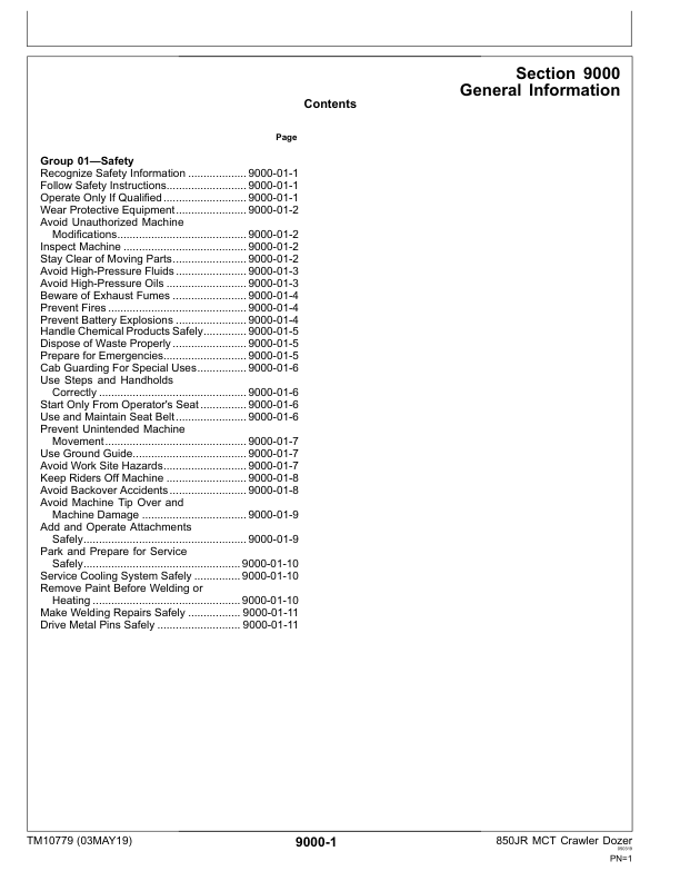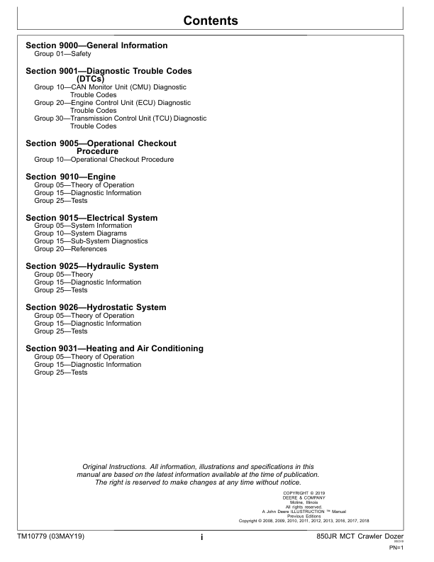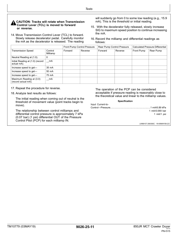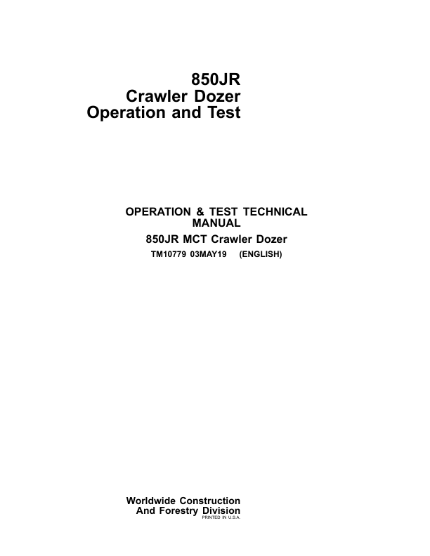 John Deere 850JR MCT Crawler Dozer Operation and Test Manual TM10779