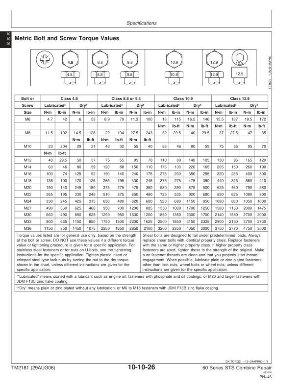 John Deere 9560 STS 9660 STS 9760 STS 9860 STS Combine Repair Technical Manual TM2181