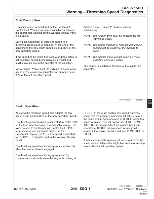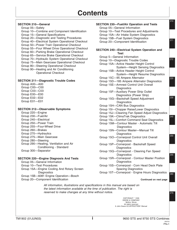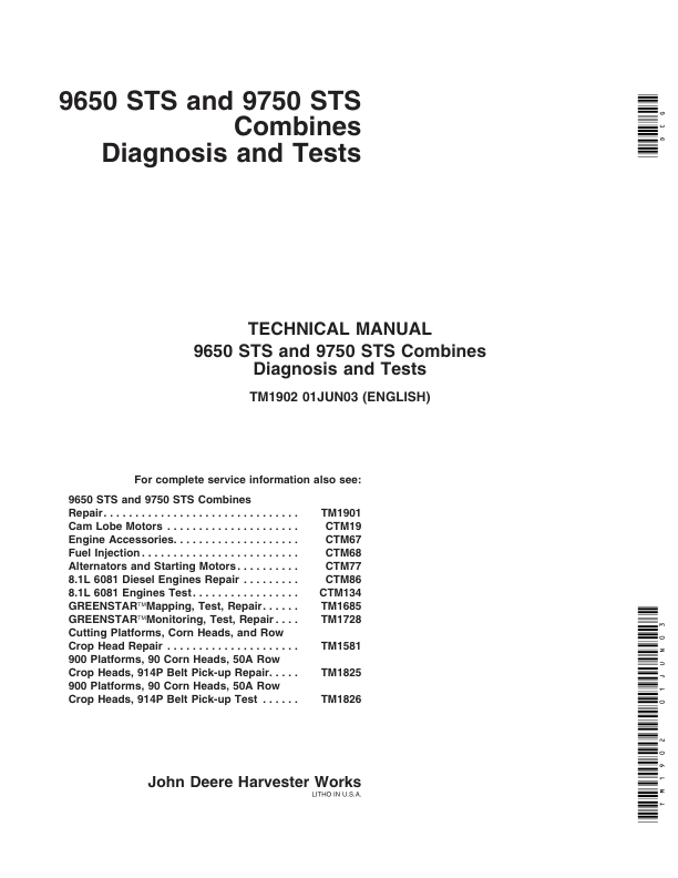 John Deere 9650 STS 9750 STS Combines Diagnosis and Tests