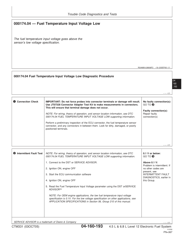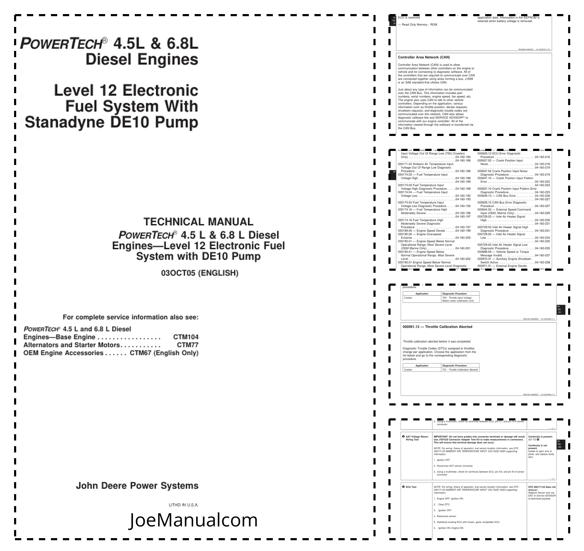John Deere PowerTech 4.5L 6.8L Diesel Engines Level 12 Electronic Fuel System Stanadyne DE10 Pump