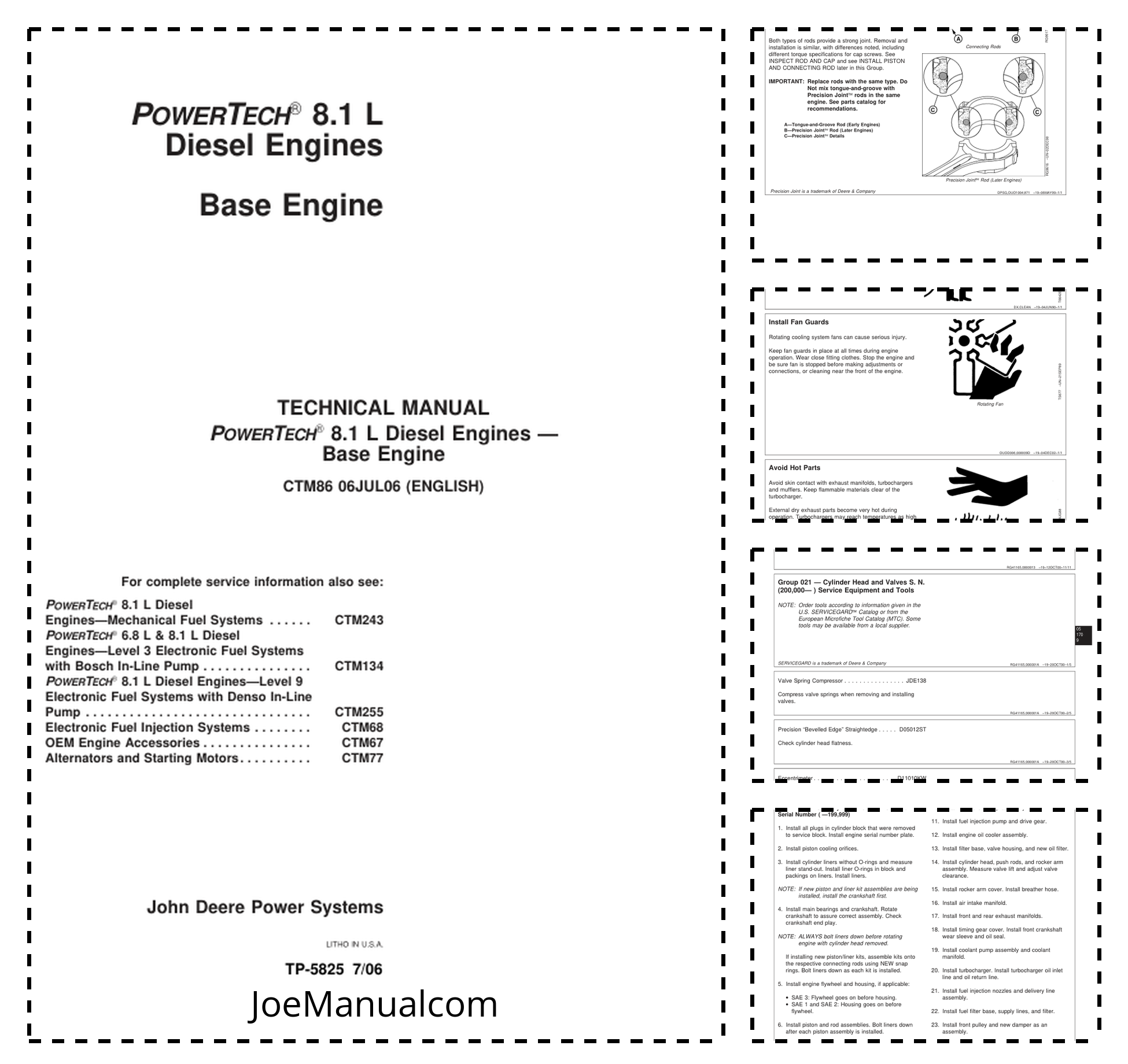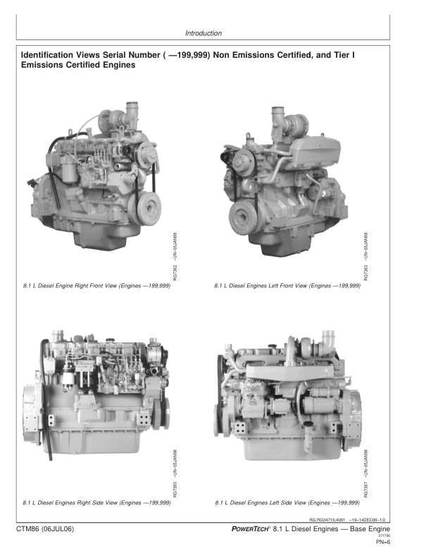 John Deere PowerTech 8.1L Diesel Engines Base Engine Technical Manual CTM86