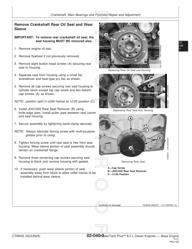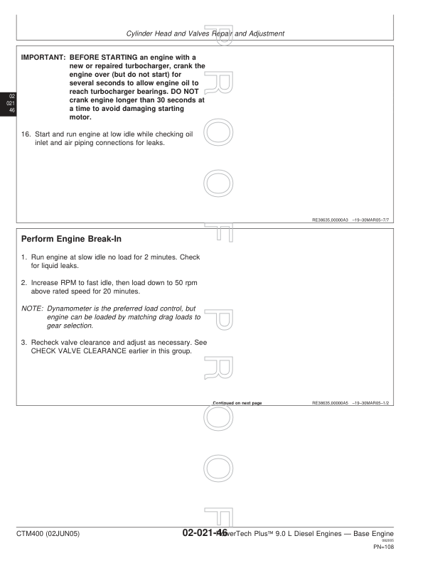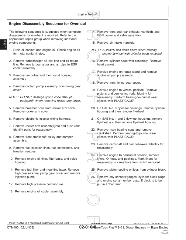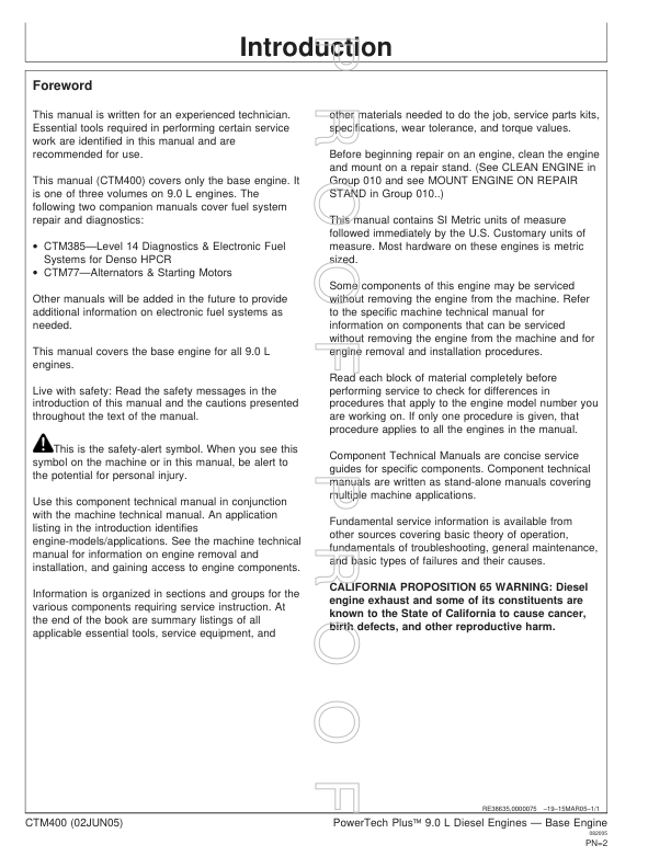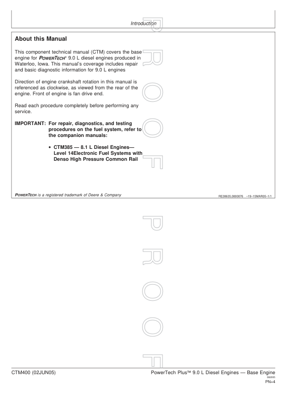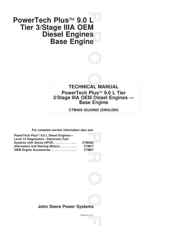 John Deere PowerTech Plus 9.0L Diesel Engines Base Engine Component Technical Manual
