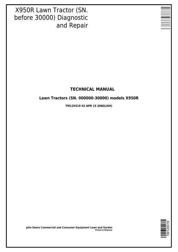 The John Deere X950R Lawn Tractor Service Manual provides comprehensive repair and maintenance information. This manual is essential for servicing your X950R tractor. Detailed diagrams and step-by-step instructions ensure accurate repairs. Covers all aspects of the machine.