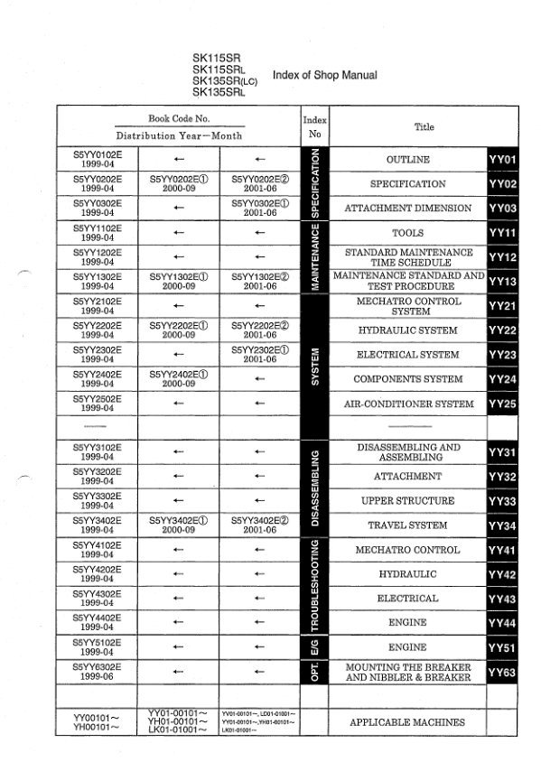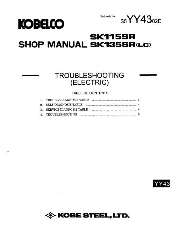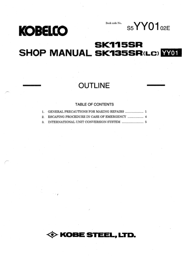 Kobelco SK115SR SK115SRL SK135SRLC SK135SRL Excavator Workshop Manual S5YY0002E