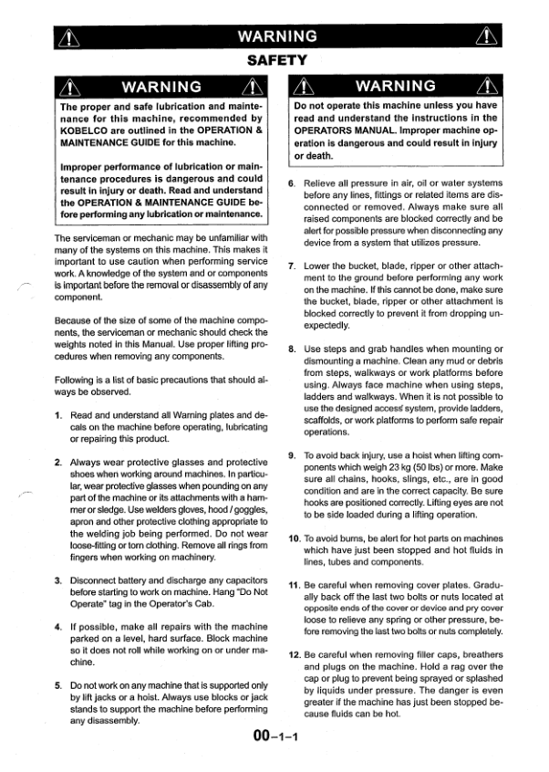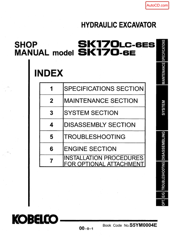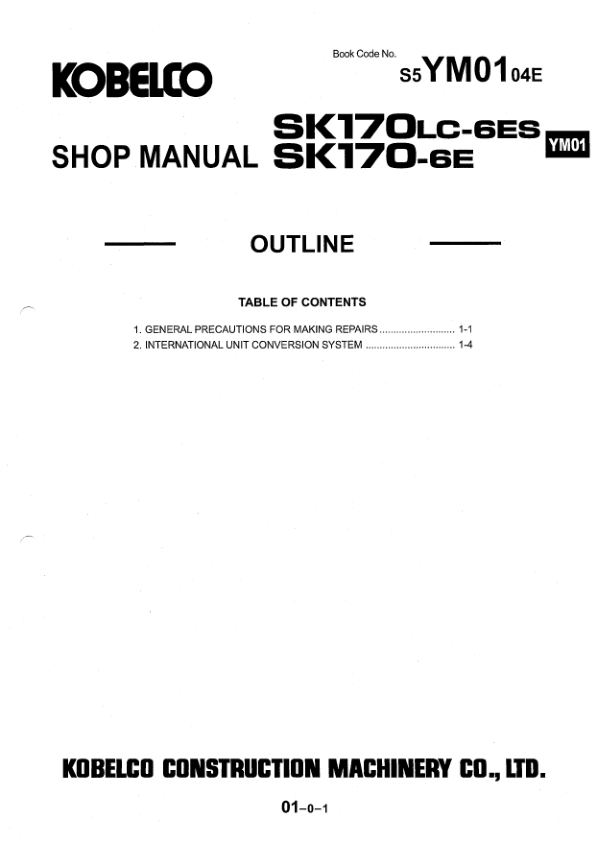 Kobelco SK170LC-6ES SK170-6E Excavator Workshop Manual S5YM0004E