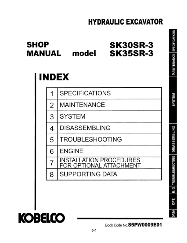 Kobelco SK30SR-3 SK35SR-3 Hydraulic Excavators Service Manual
