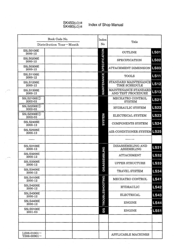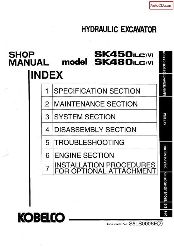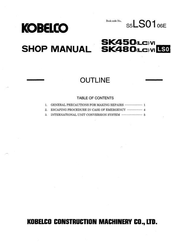Kobelco SK450 LCVI SK480 LCVI Excavator Workshop Manual S5 LS0006 E