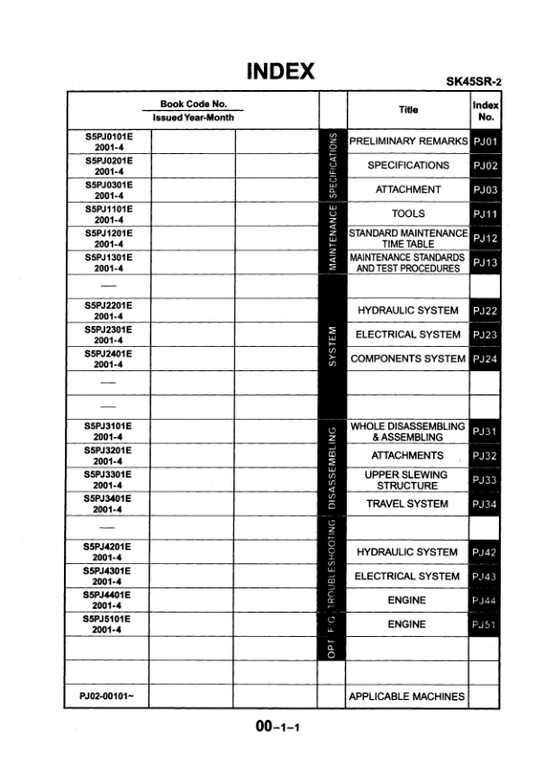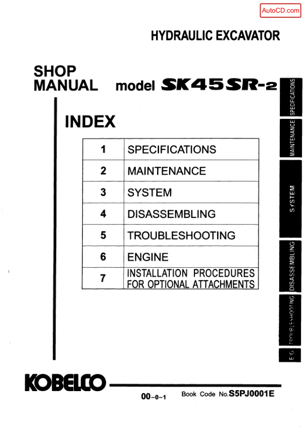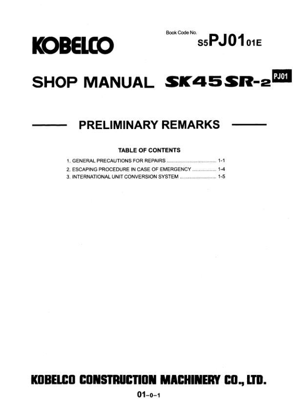Kobelco SK45SR-2 Excavator Workshop Manual S5PJ0001E