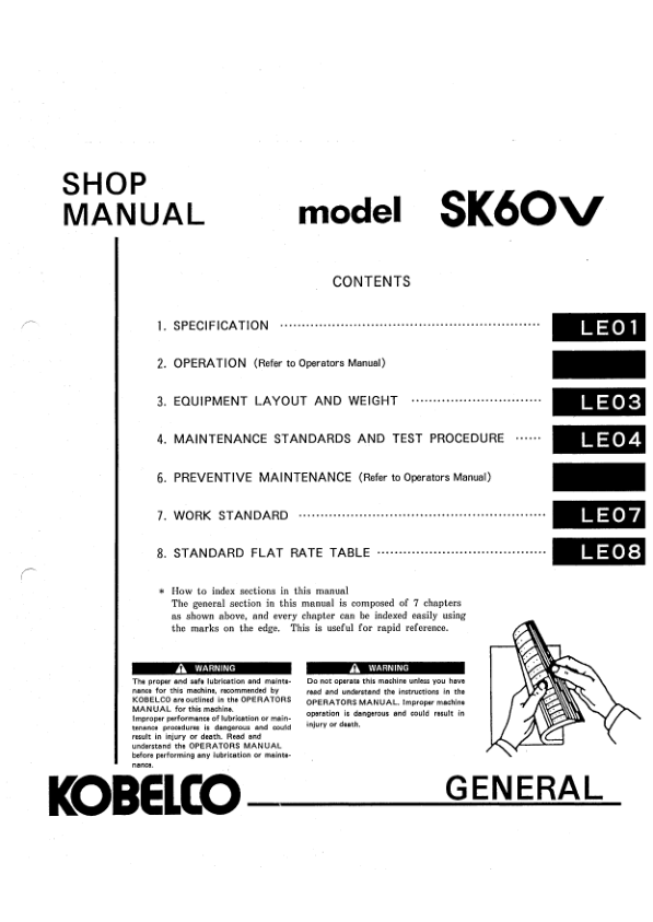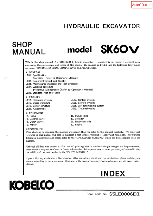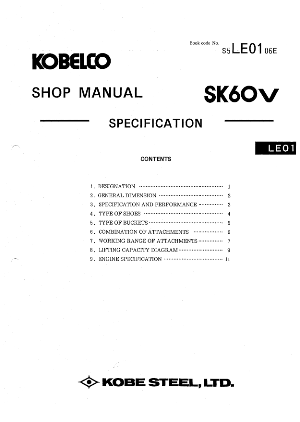 Kobelco SK60V Excavator Workshop Manual S5LE0006E