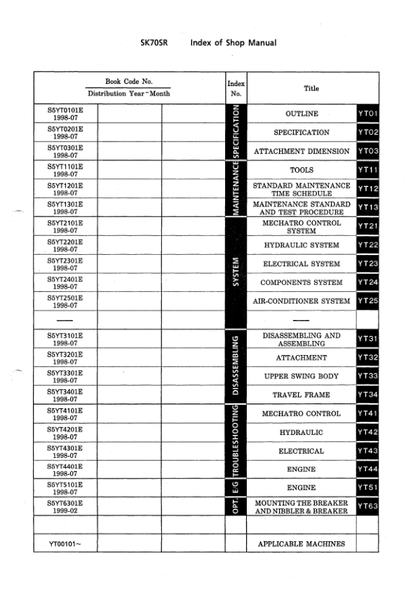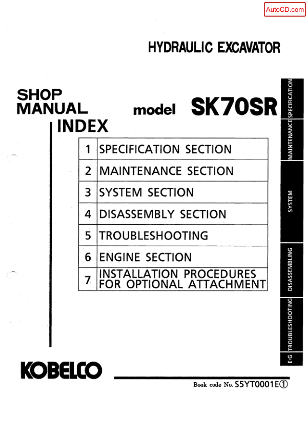 Kobelco SK70SR Excavator Workshop Manual S5YT0001E