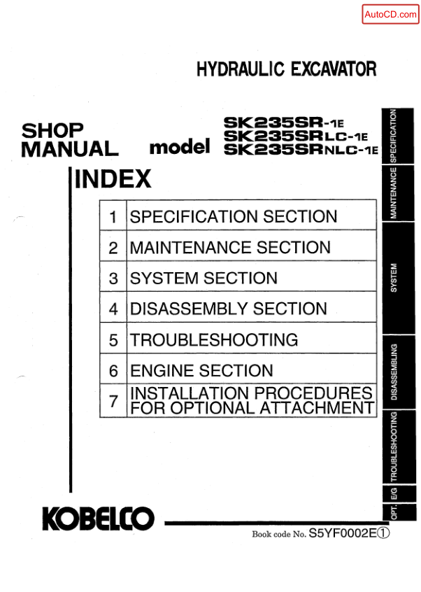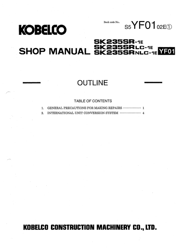 Kobelco SKSK235 SR-1 E SK235 SRLC-1 E SK235 SRNLC-1 E Excavator Workshop Manual S5 YF0002 E serves as a critical resource for technicians and operators who rely on precise guidance during equipment servicing. This detailed manual provides comprehensive instructions covering maintenance procedures safety protocols and operational best practices ensuring optimal performance. By following the structured content this document delivers, users can confidently address technical challenges while minimizing errors. The emphasis on professional service standards helps prevent operational interruptions and supports consistent equipment reliability.