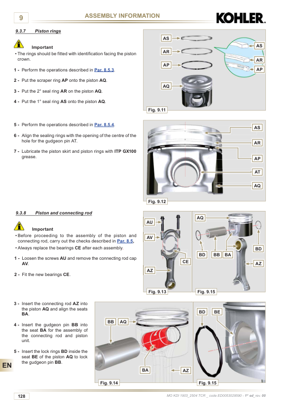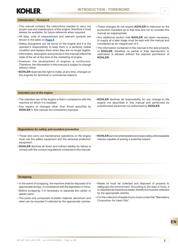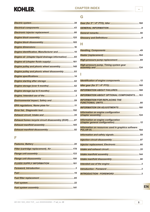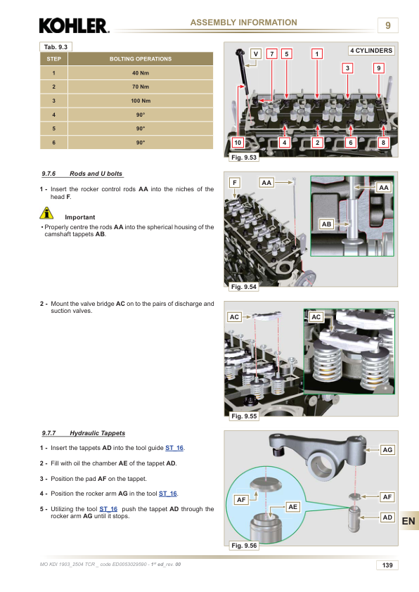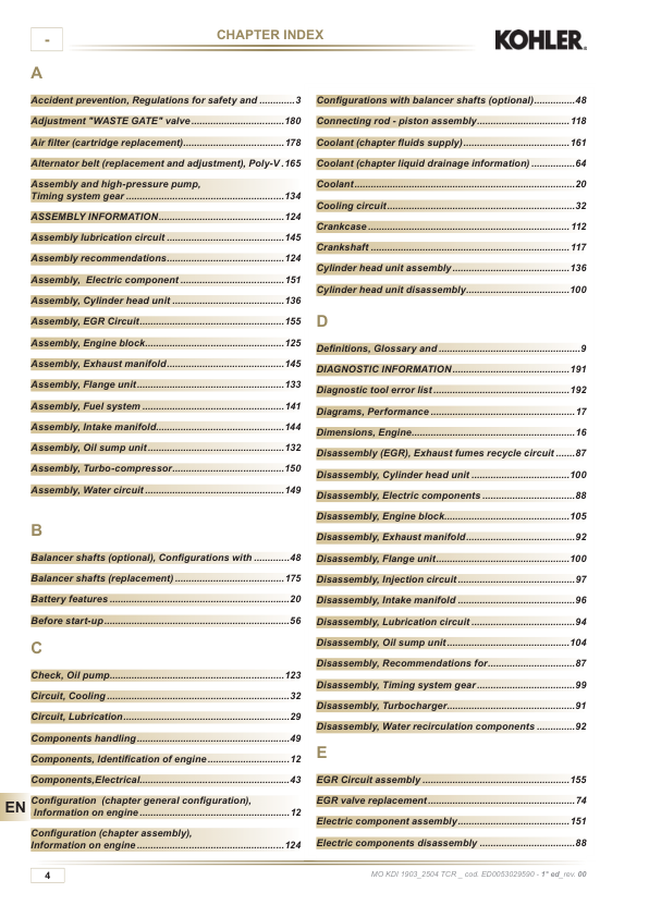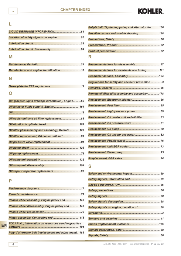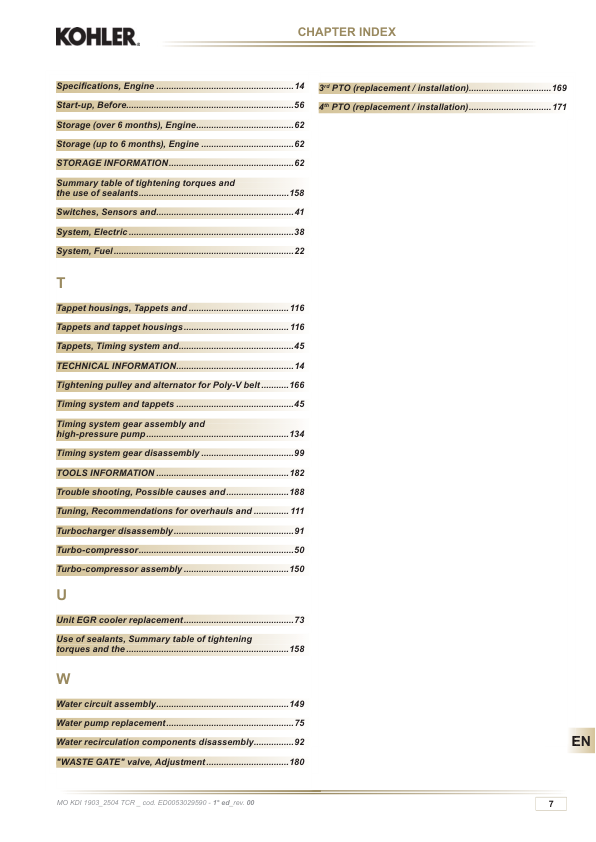 Kohler 903 TCR 2504 Workshop Manual 9806/6050