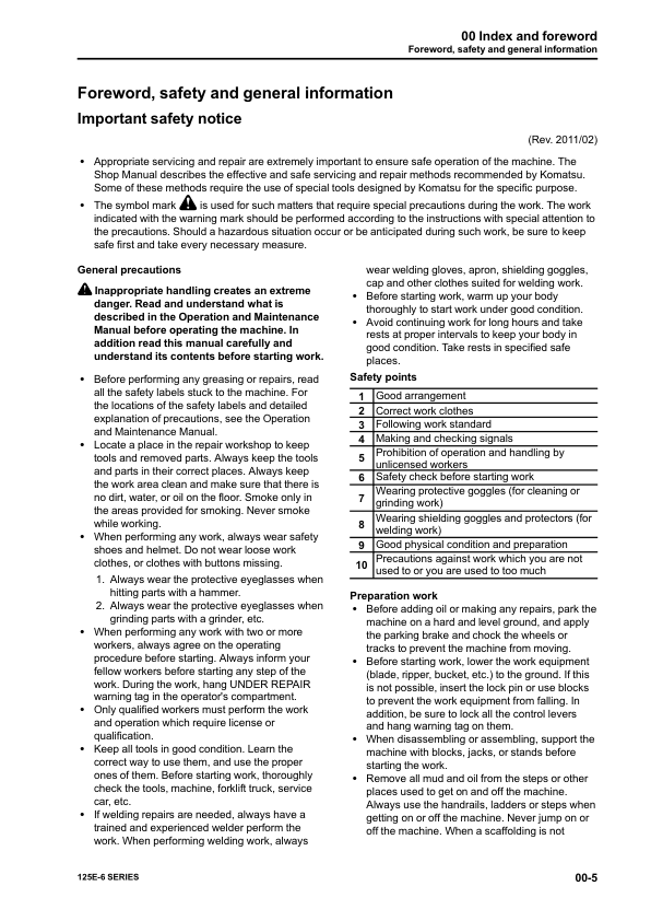 Komatsu 125E-6 Series Diesel Engine Workshop Manual