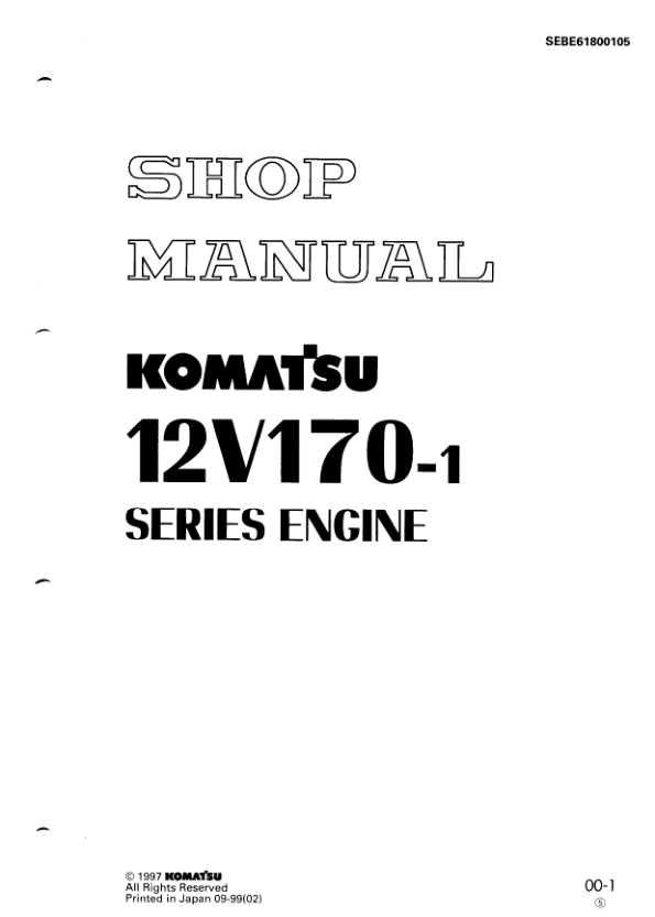 Komatsu 12V170-1 Series Diesel Engine Workshop Manual SEBE61800105
