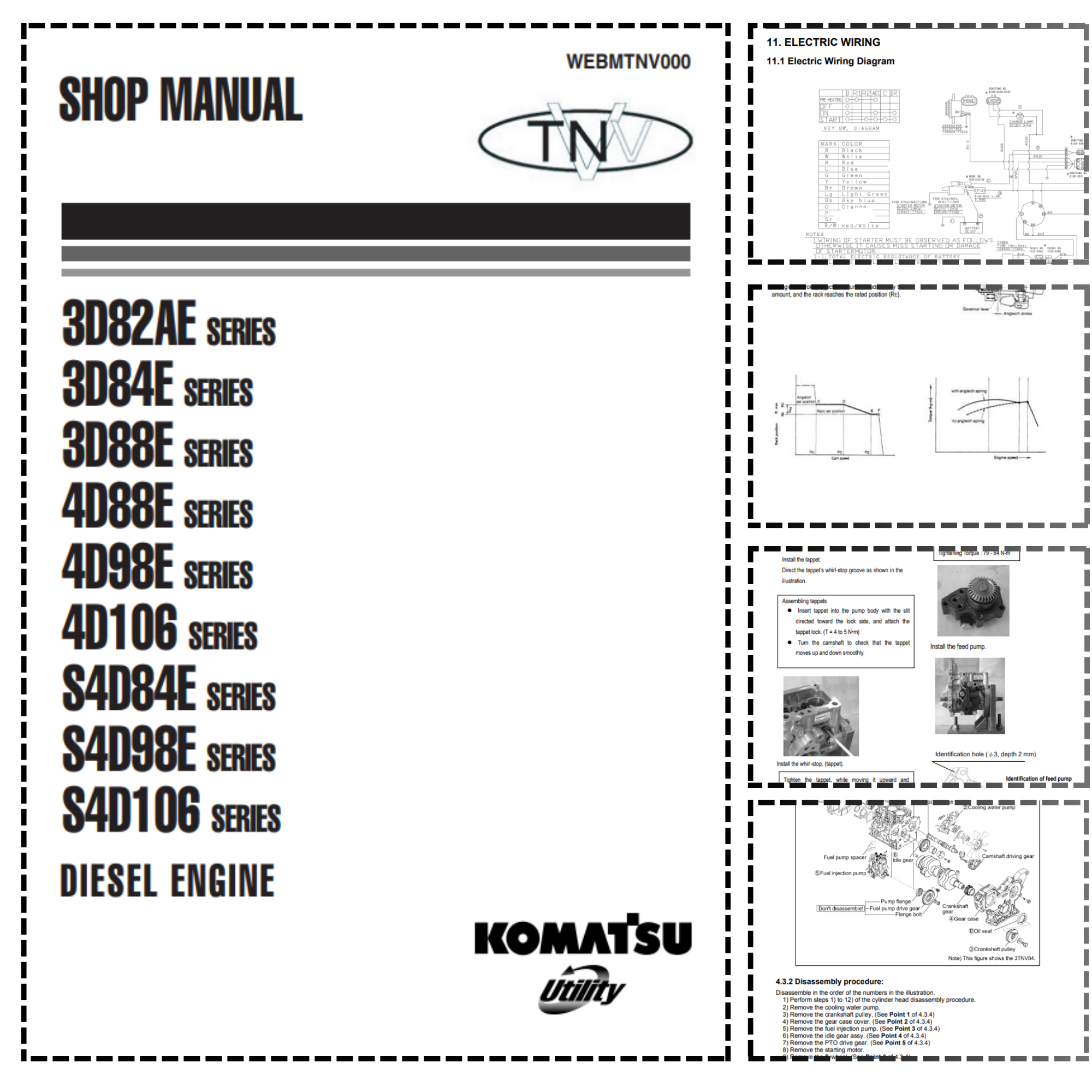KOMATSU 3D82AE 3D84E 3D88E 4D88E 4D98E 4D106 S4D84E S4D98E S4D106 Diesel Engine Shop Manual