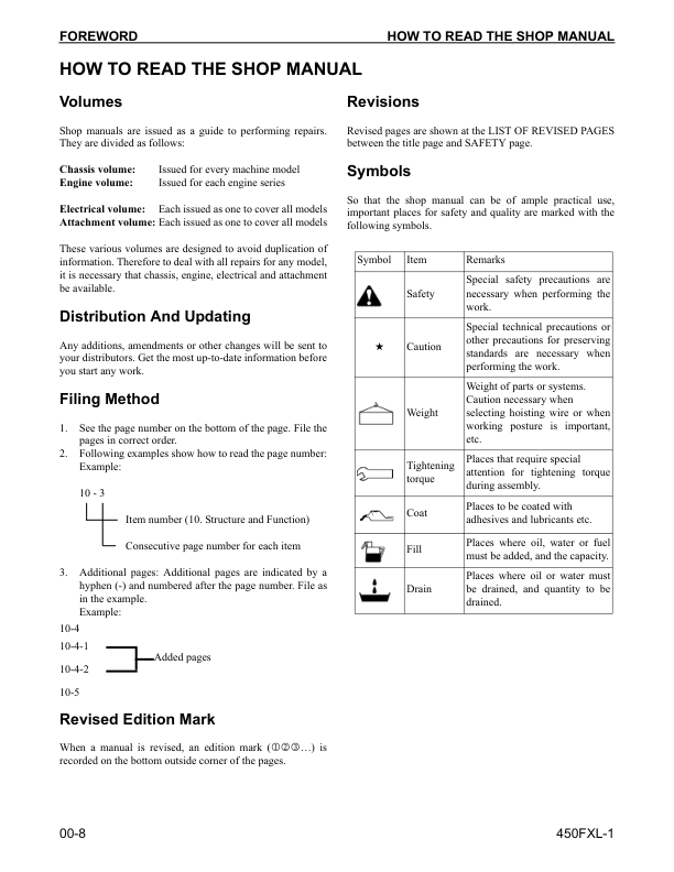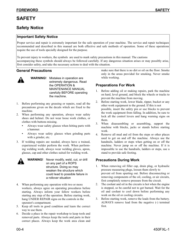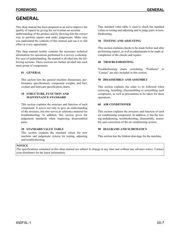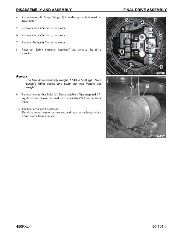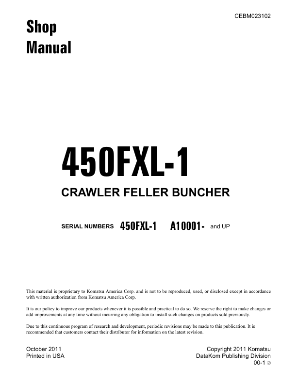 Komatsu 450FXL-1 Crawler Feller Buncher Workshop Manual SN A10001 and UP