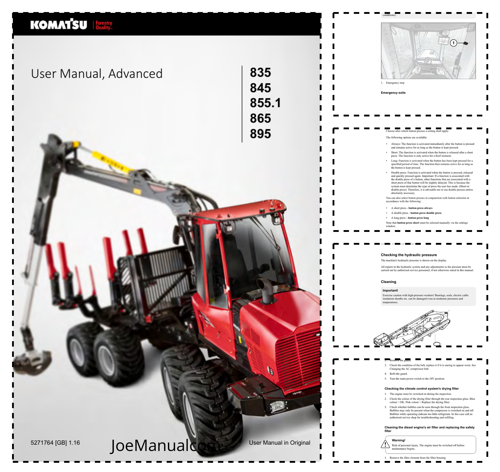Komatsu 835 845 855.1 865 895 Forwarders Advanced Operators Manual. This manual provides comprehensive guidance for experienced operators of Komatsu 835, 845, 855.1, 865, and 895 forwarders. It covers advanced operating techniques, troubleshooting procedures, and maintenance schedules to maximize machine performance and longevity.