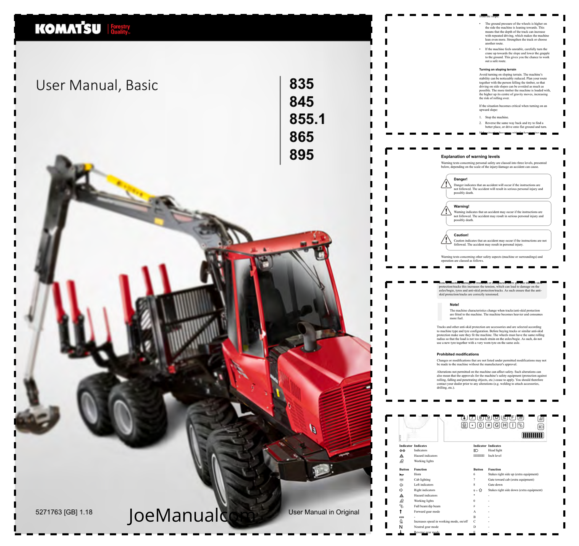 Komatsu 835 845 855.1 865 895 Forwarders Operators Manual