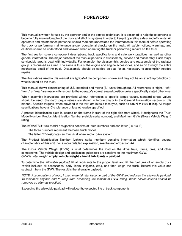 Komatsu 930E-4SE Dump Truck Workshop Manual SN A30587 and UP