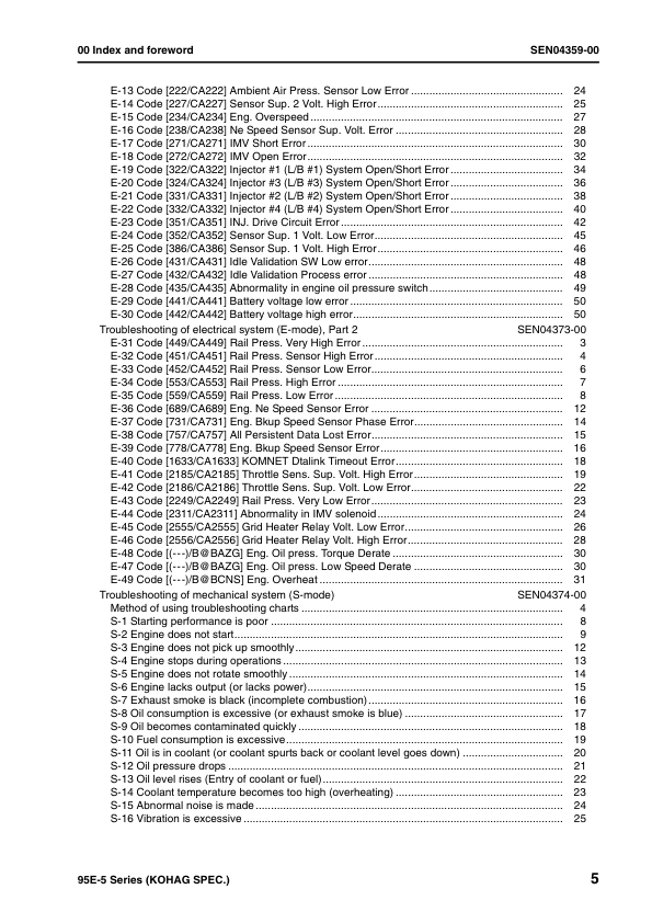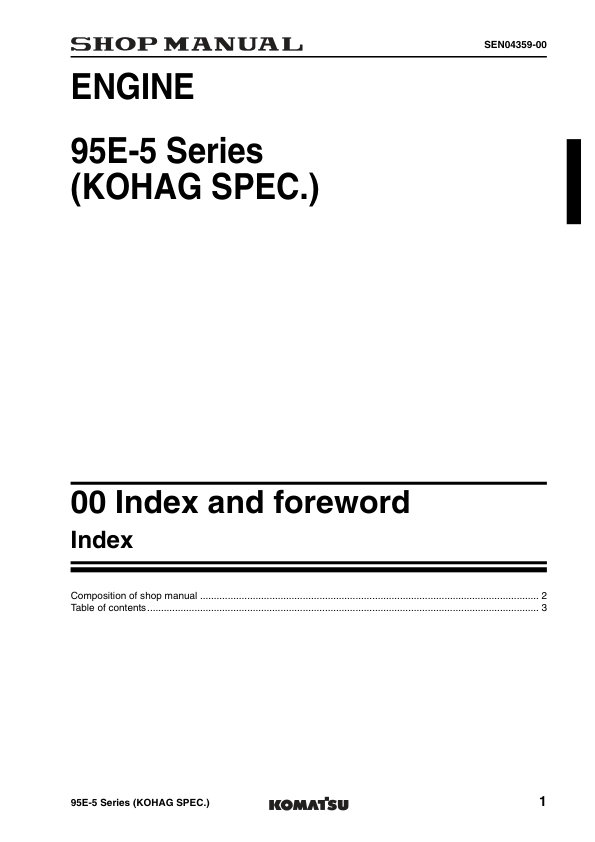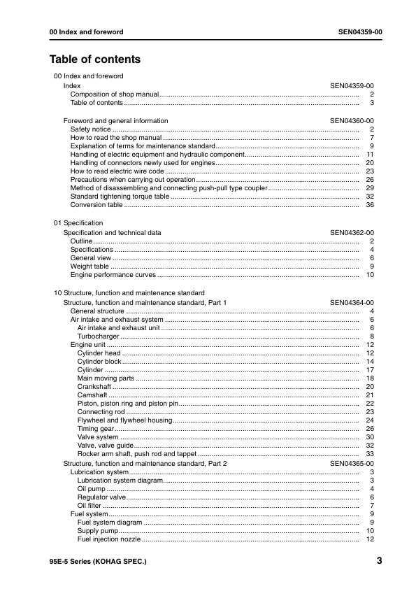 Komatsu 95E-5 Series Kohag Spec Diesel Engine Workshop Manual