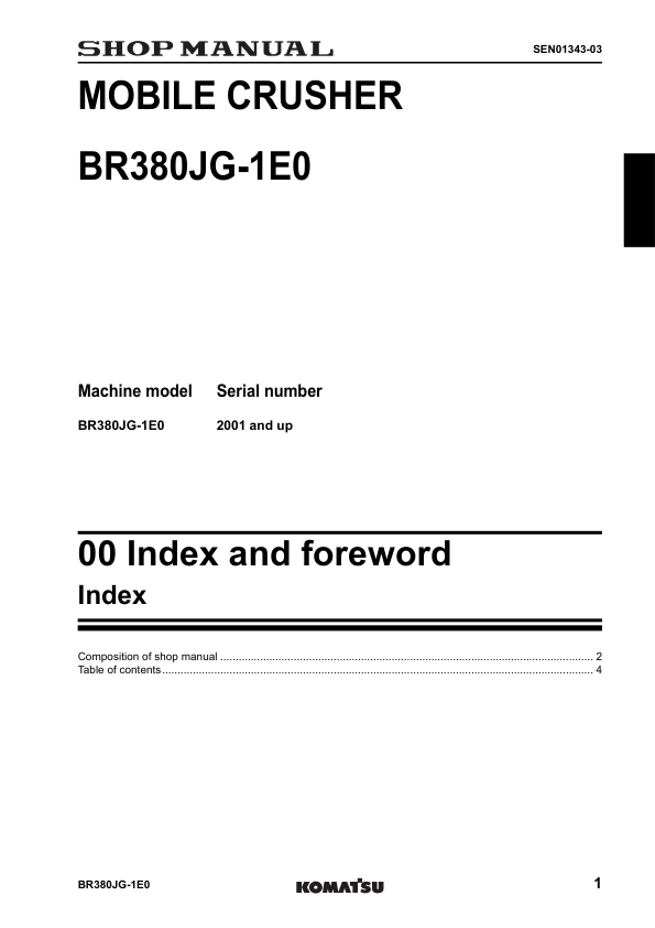 Komatsu BR380JB-1E0 Galeo Mobile Crusher Workshop Manual SN 2001 and UP