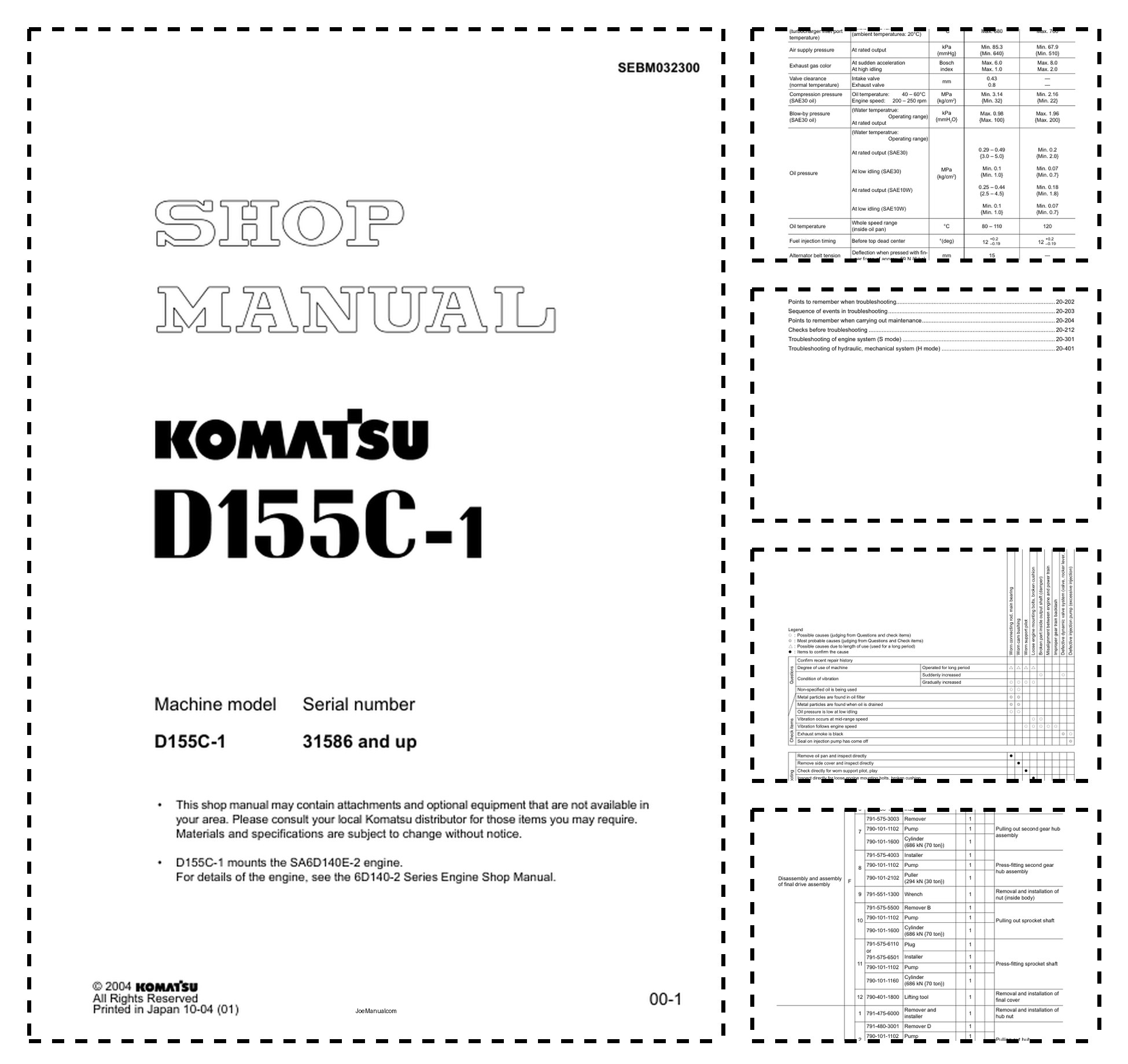 Komatsu D155C-1 Pipe Layer Machine Workshop Manual SN 31586 and UP
