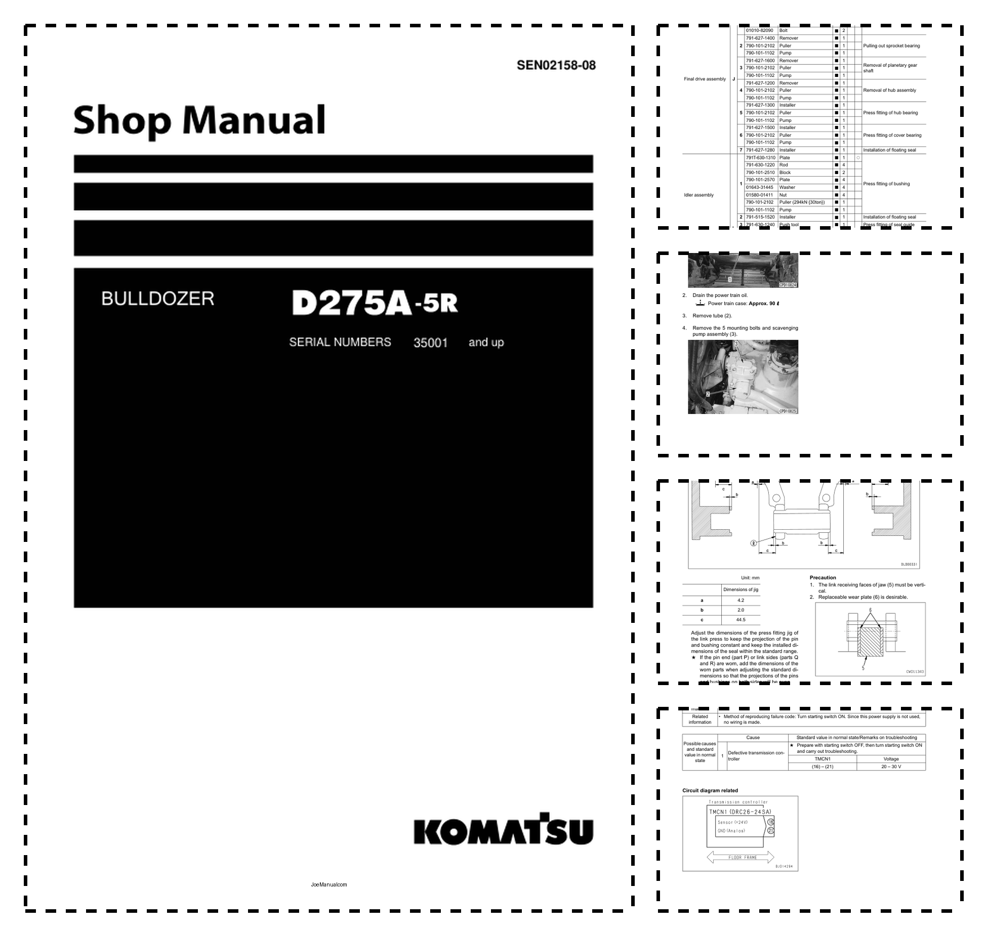 Komatsu D275A-5R Bulldozer Workshop Manual SN 35001 and UP