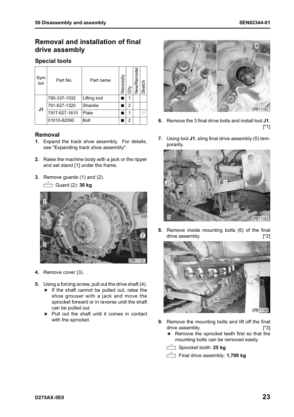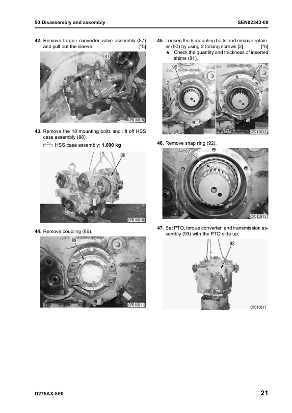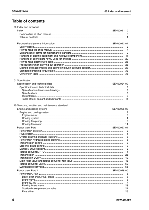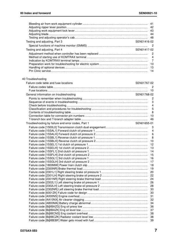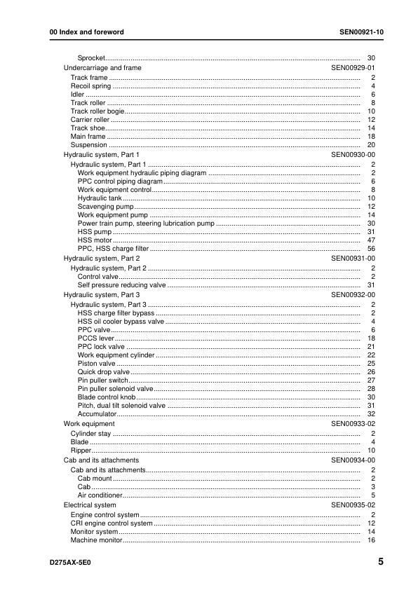Komatsu D275AX-5E0 Bulldozer Workshop Manual SN 30001 and UP