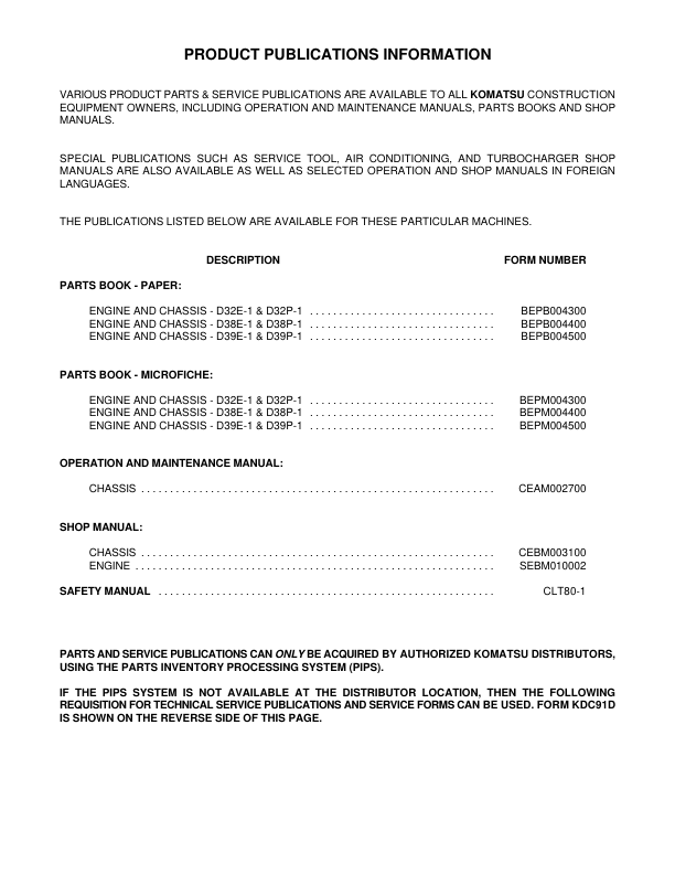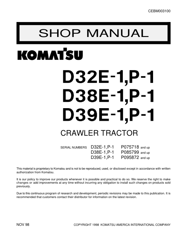 Komatsu D32E-1 D38E-1 D39E-1 P-1 Bulldozer Workshop Manual