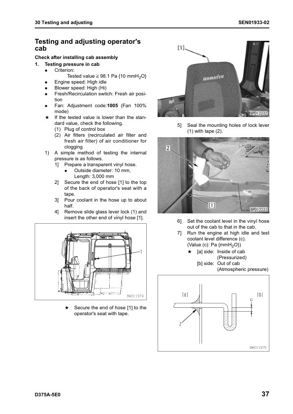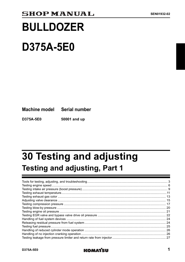Komatsu D375A-5E0 Bulldozer Workshop Manual SN 50001 and UP