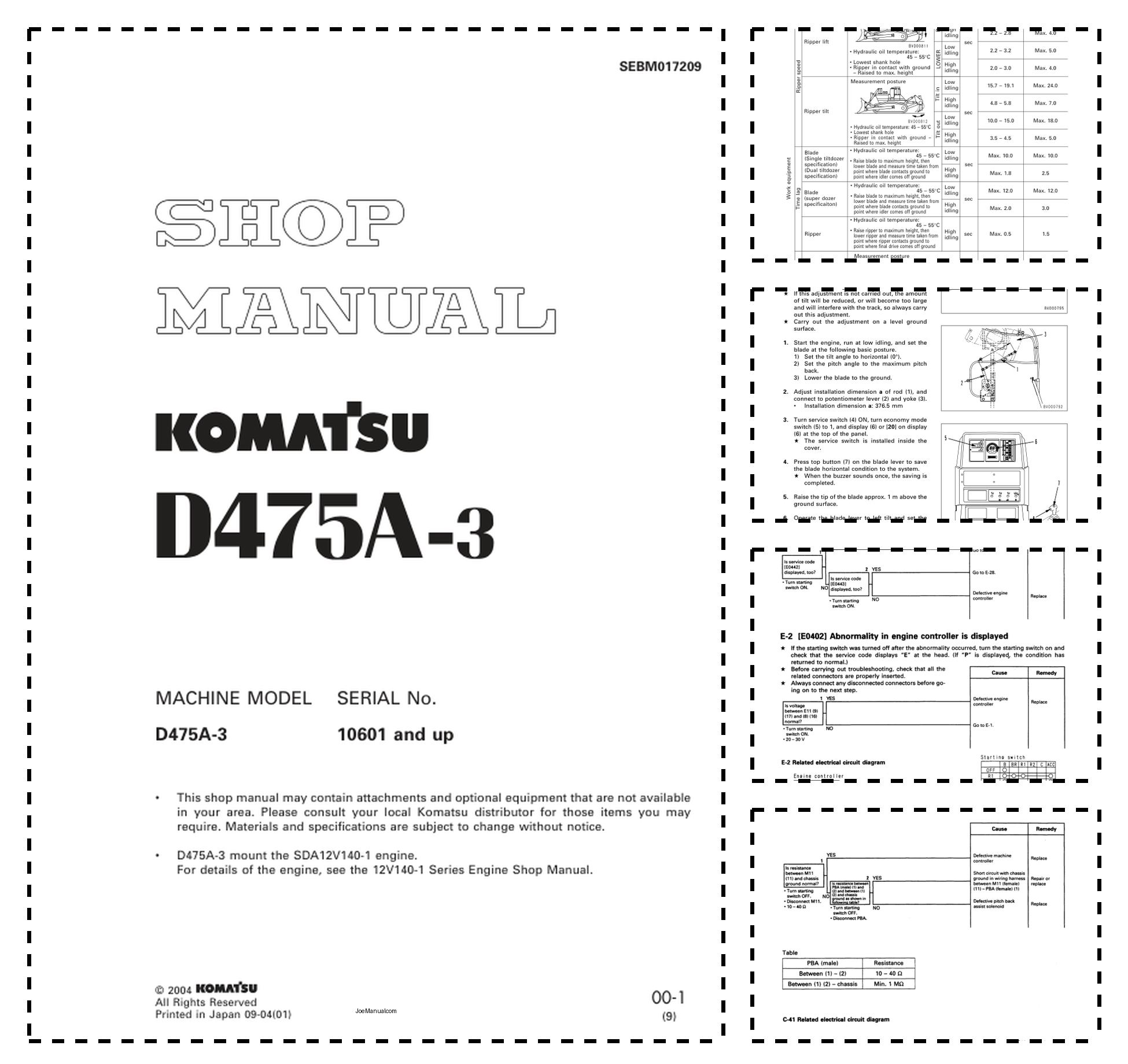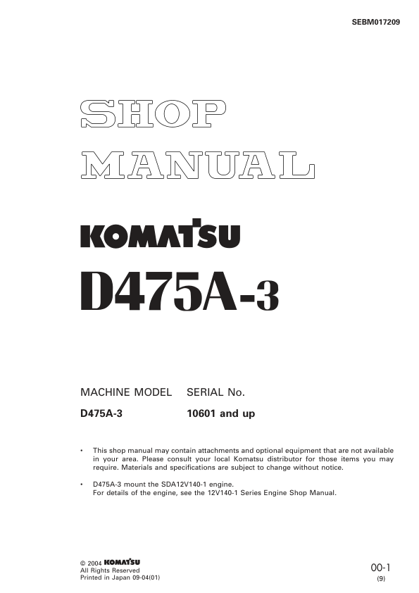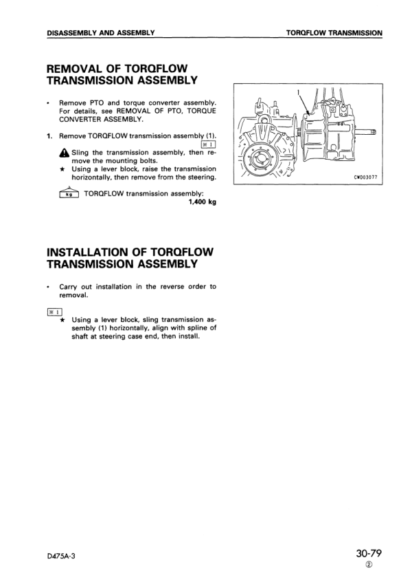 Komatsu D475A-3 Bulldozer Workshop Manual SN 10601 and UP