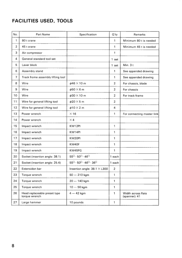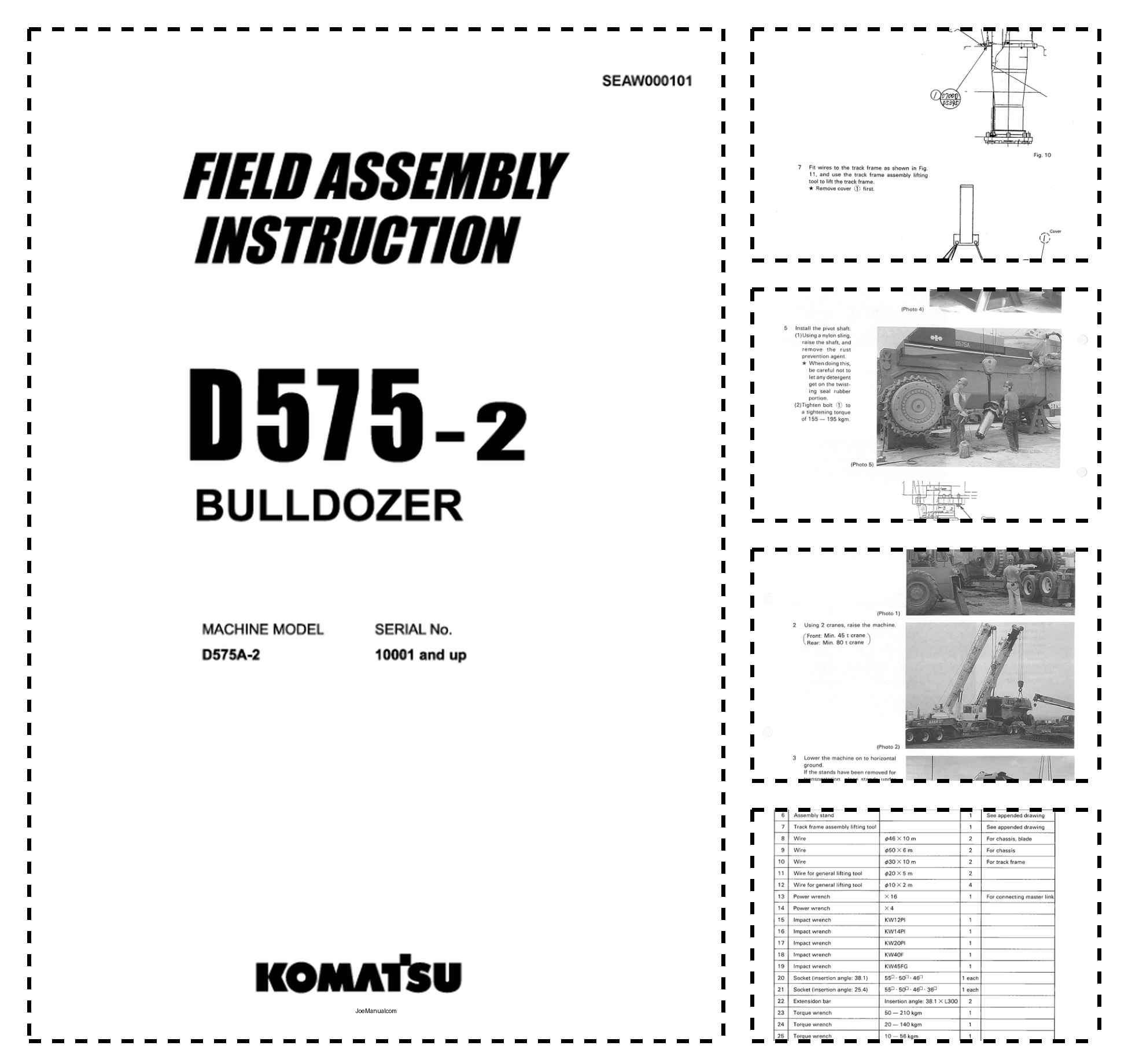 Komatsu D575-2 Bulldozer Field Assembly Instruction SN 10001 and UP
