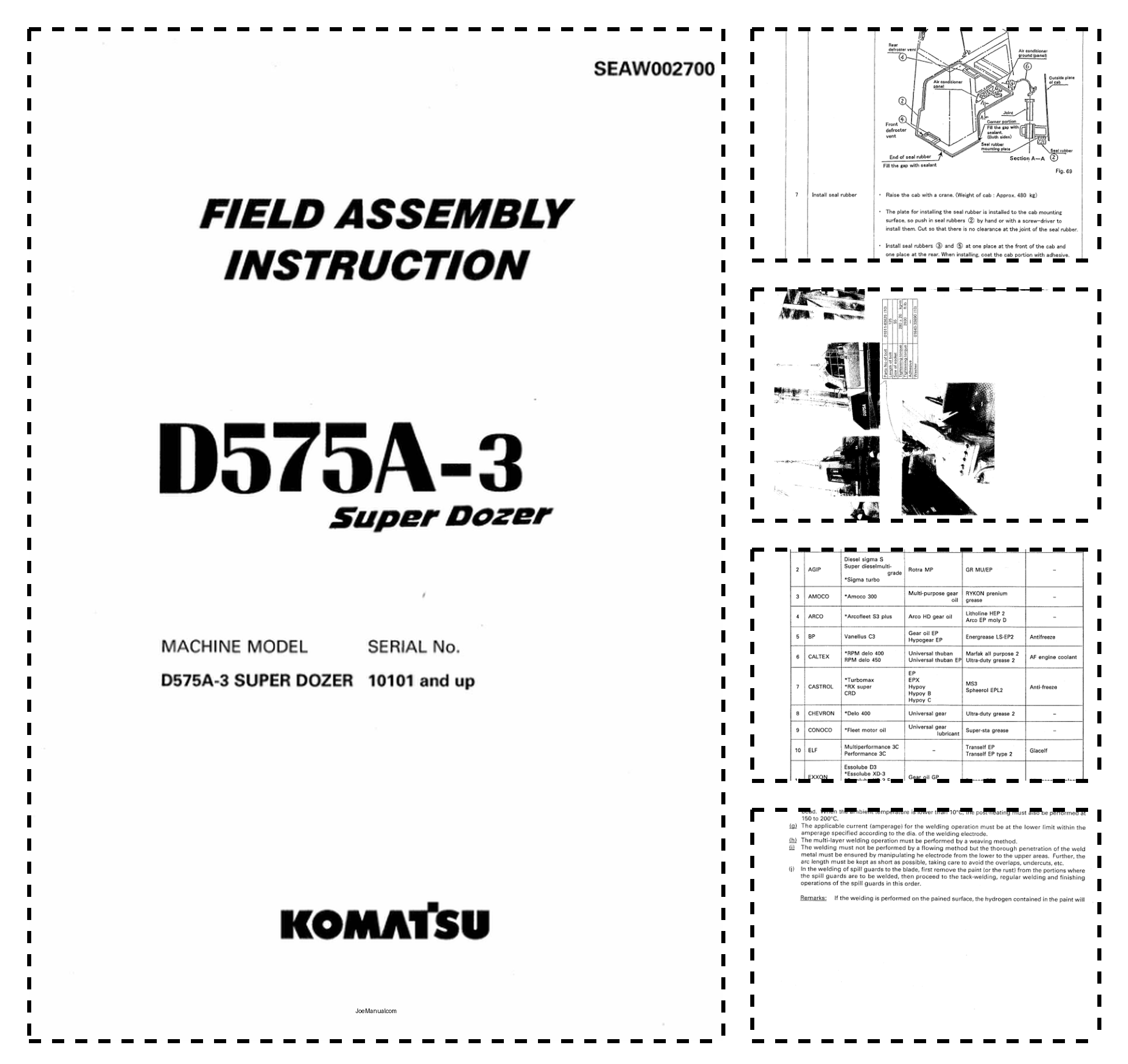 Komatsu D575A-3 Super Dozer Field Assembly Instruction SN 10101 and UP