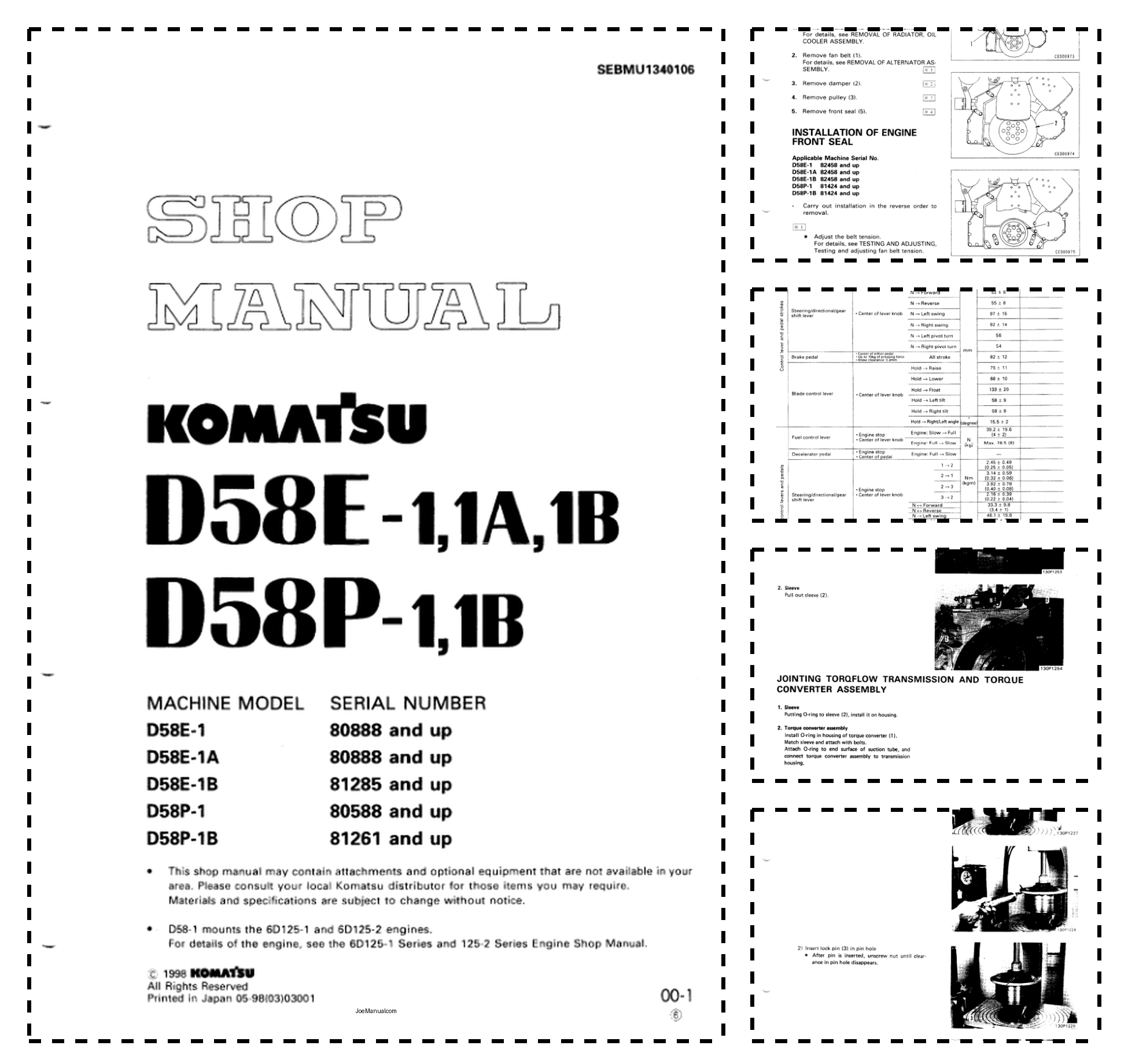 Komatsu D58E D58P 1 1A 1B Bulldozer Workshop Manual SN 80888 81285 80588 81261 and UP
