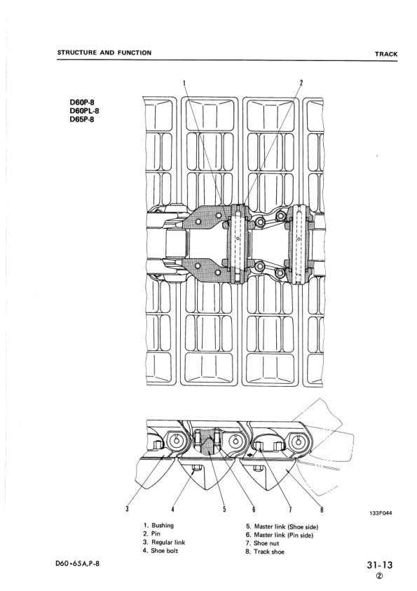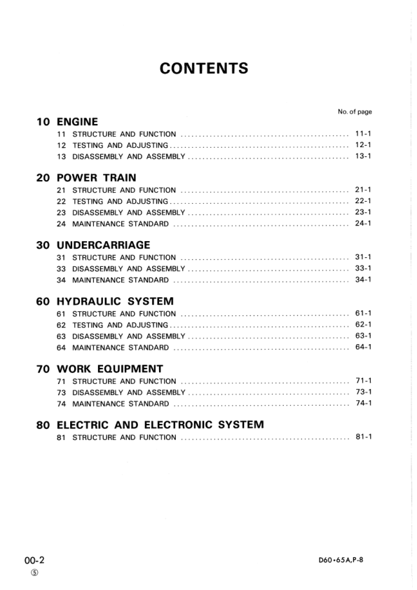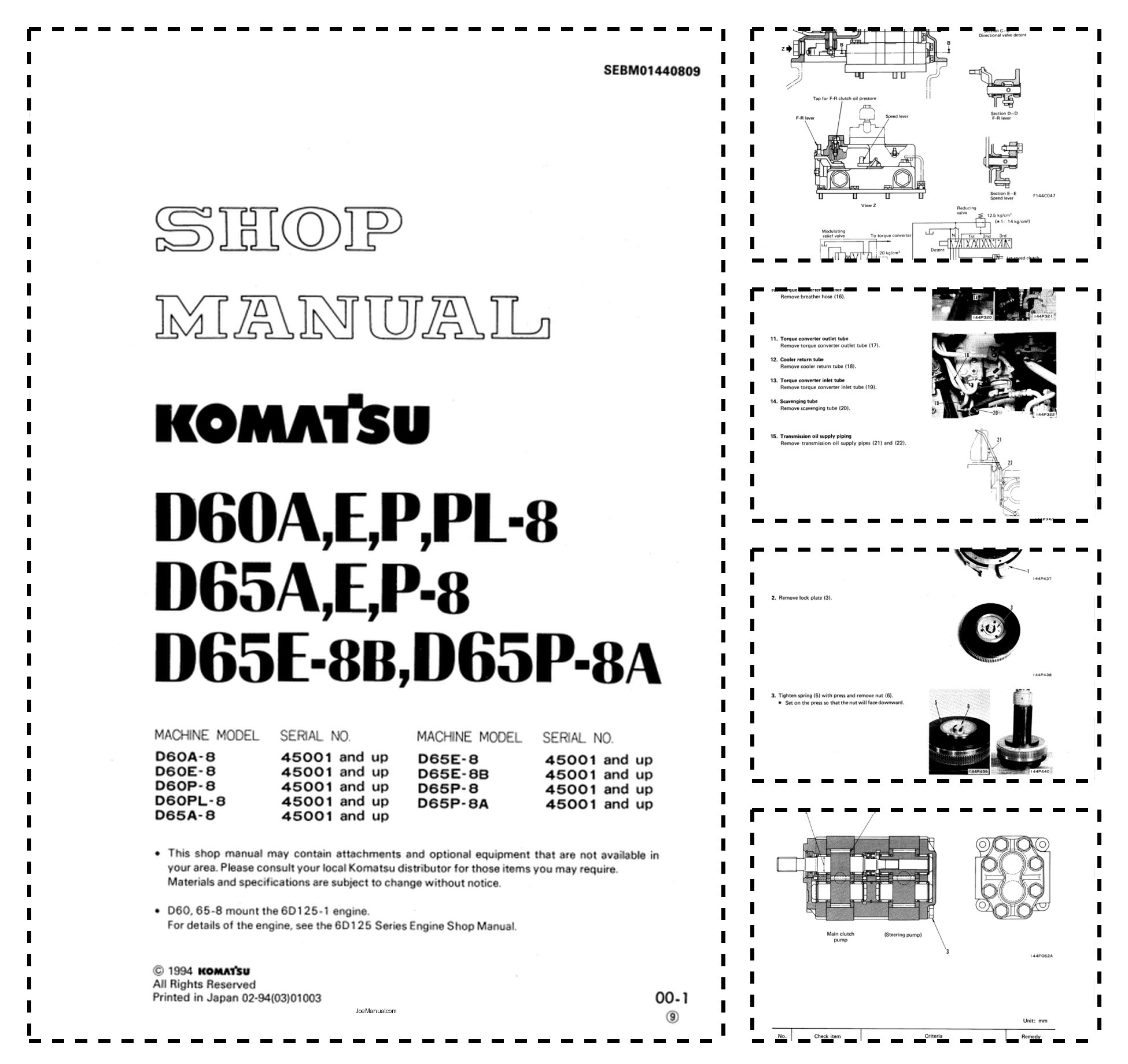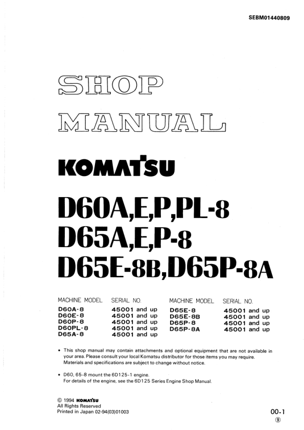 Komatsu D60A E P PL-8 D65A E P-8 D65E-8B D65P-8A Bulldozer Workshop Manual SN 45001 and UP