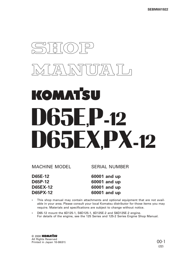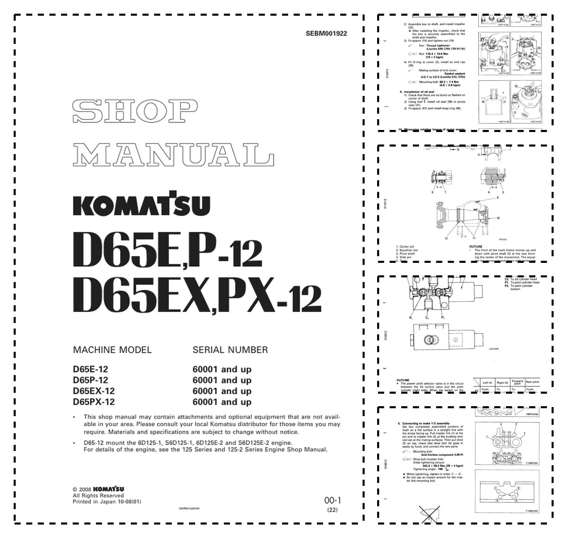 Komatsu D65E P-12 D65EX PX-12 Bulldozer Workshop Manual SN 50001 and UP