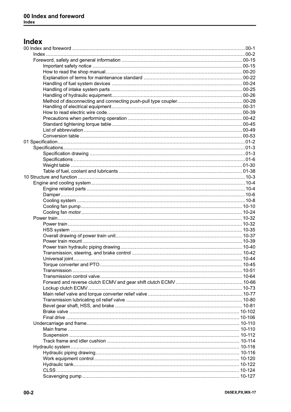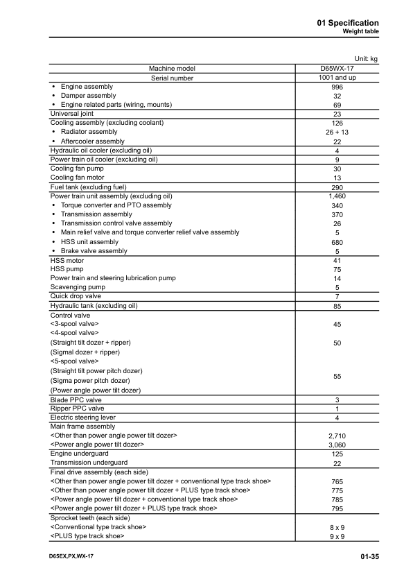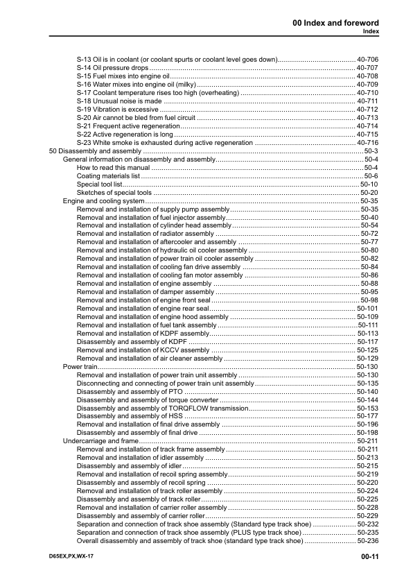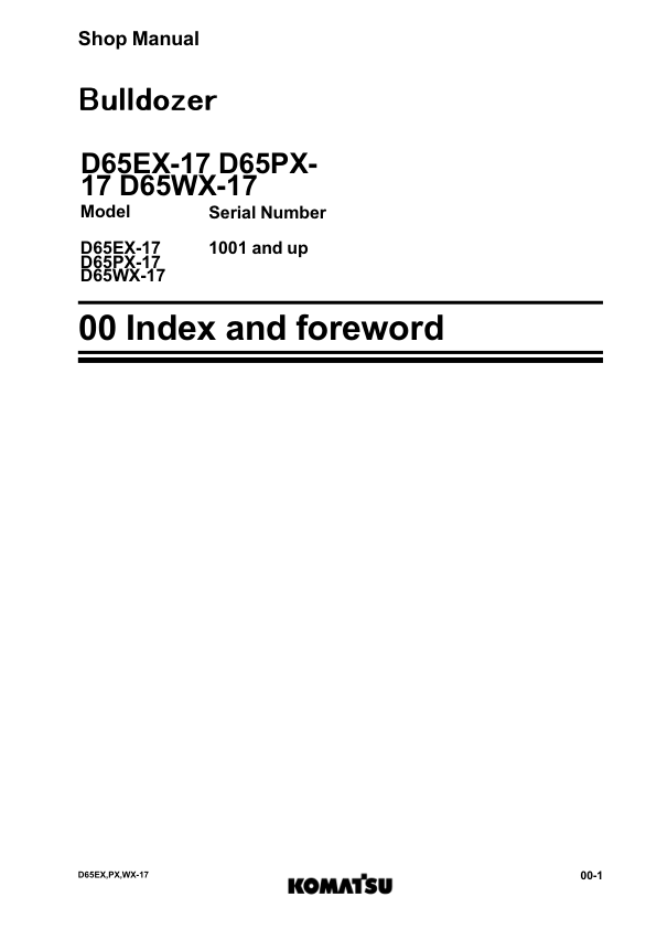 Komatsu D65EX-17 D65PX-17 D65WX-17 Bulldozer Workshop Manual SN 1001 and UP