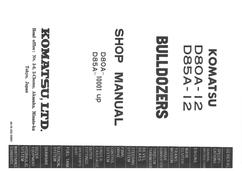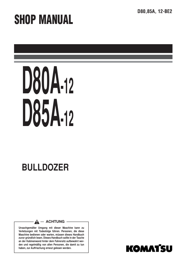 Komatsu D80A-12 D85A-12 Bulldozer Workshop Manual SN 10001 and UP