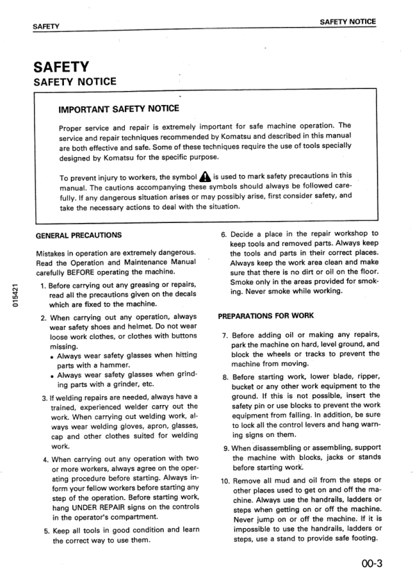 Komatsu D85A E P-21 Bulldozer Workshop Manual SN 35001 3001 and UP