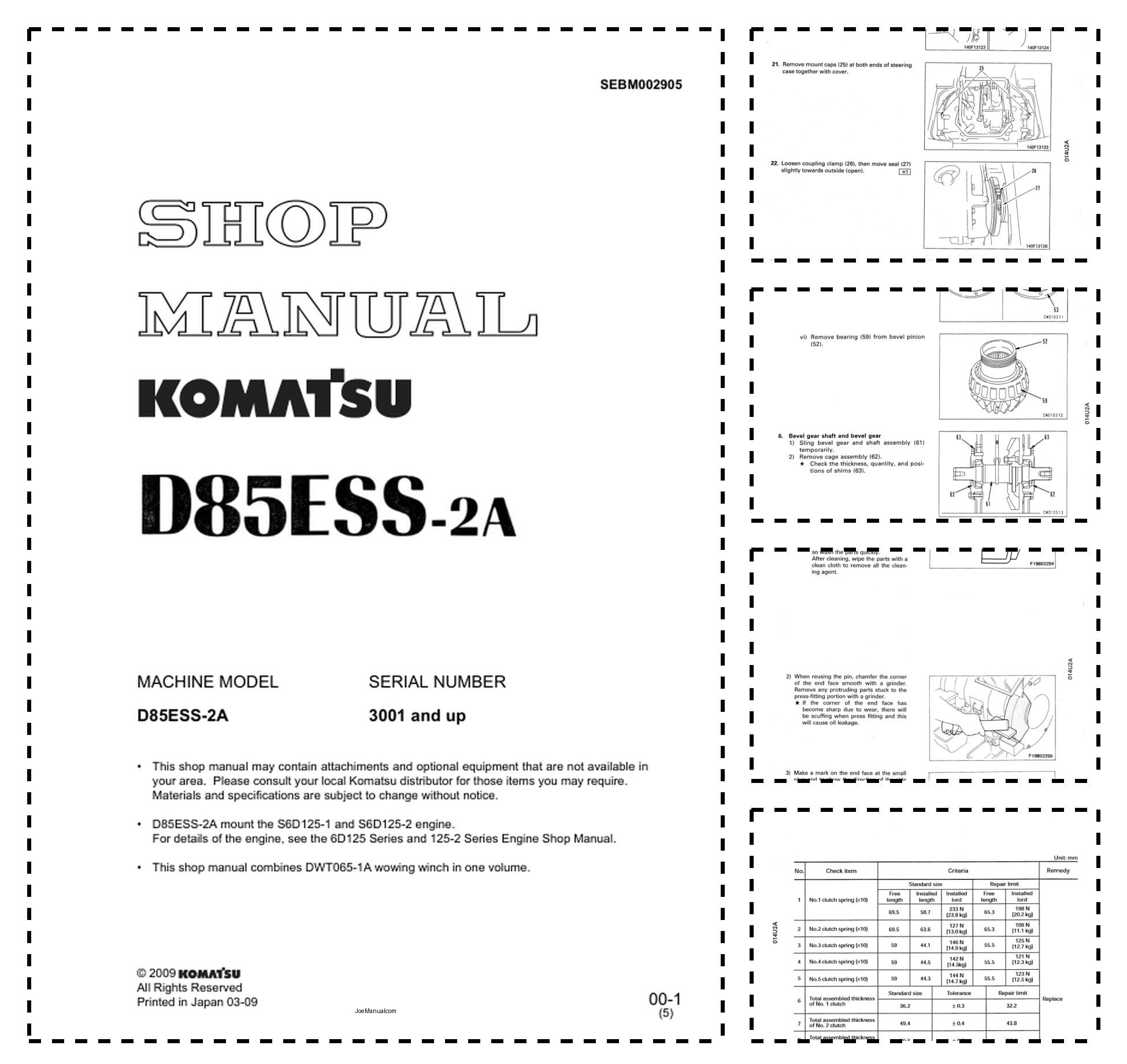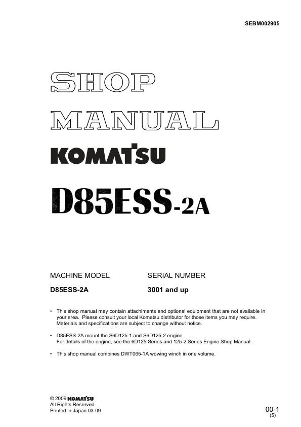 Komatsu D85ESSS-2A Bulldozer Workshop Manual SN 3001 and UP