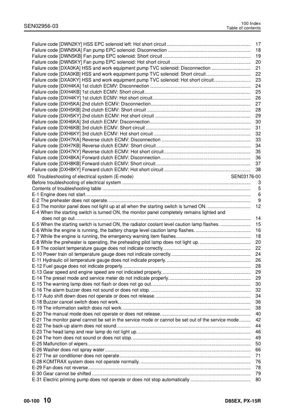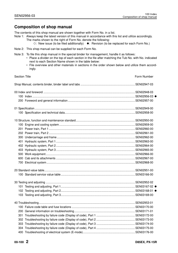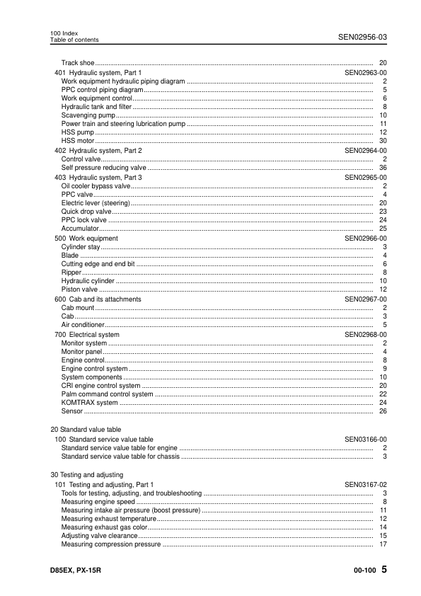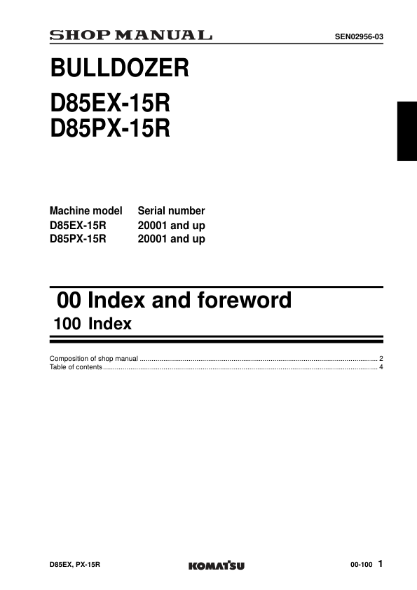 Komatsu D85EX PX-15R Bulldozer Workshop Manual SN 20001 and UP