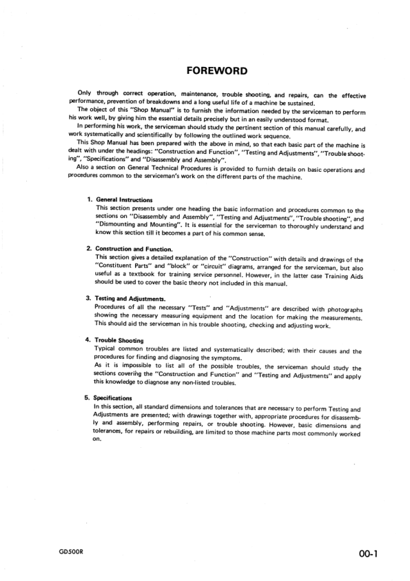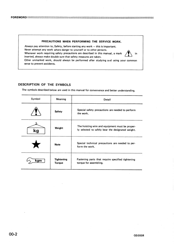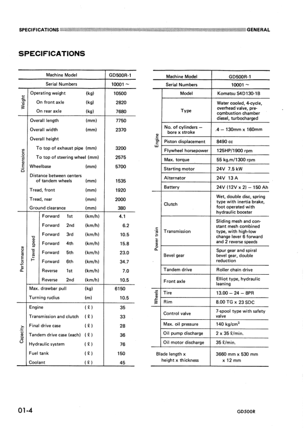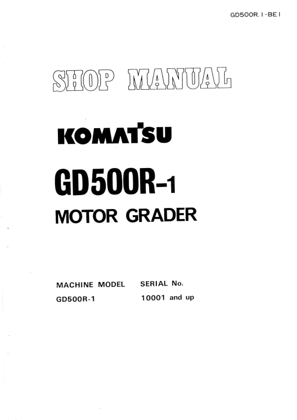 Komatsu GD500R-1 Motor Grader Workshop Manual SN 10001 and UP