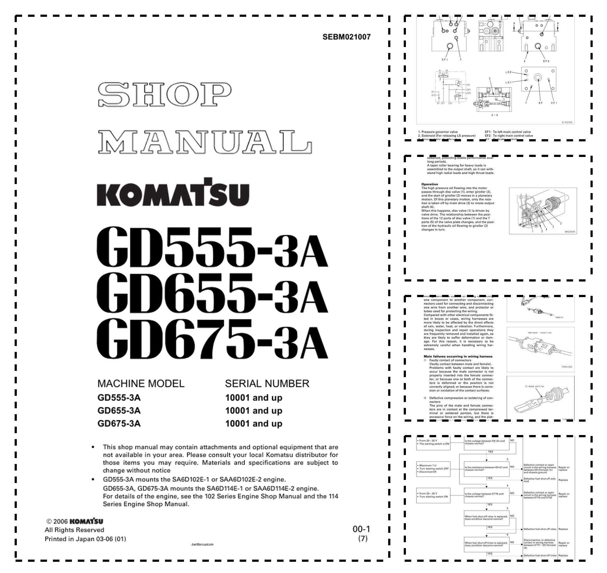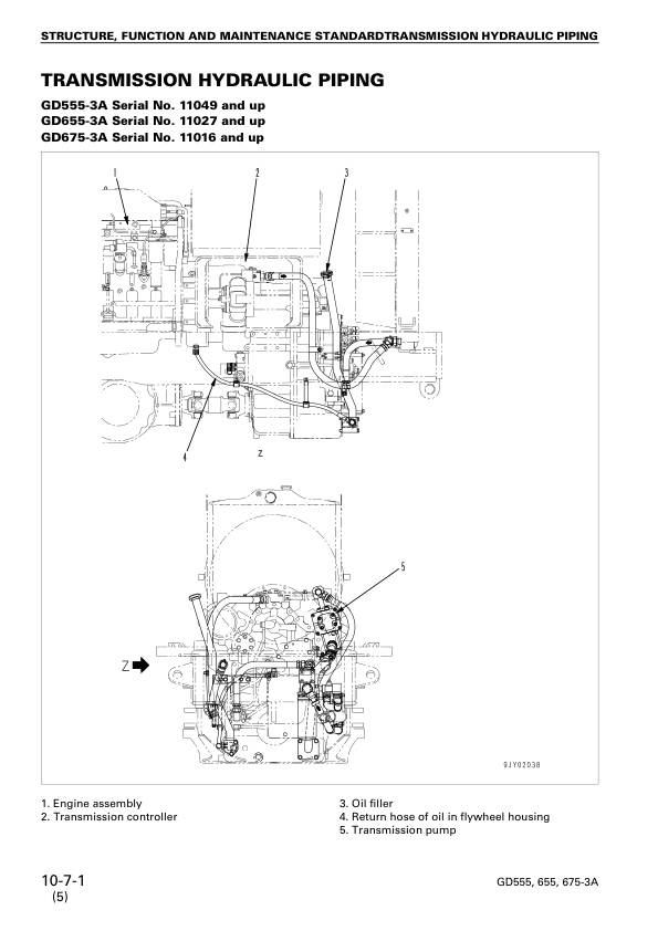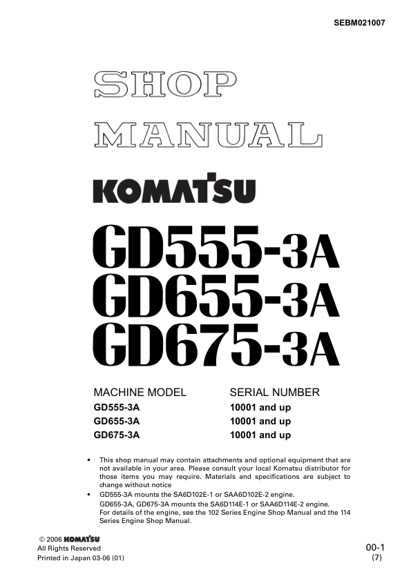 Komatsu GD555-3A GD655-3A GD675-3A Motor Grader Workshop Manual SN 10001 and UP v21007