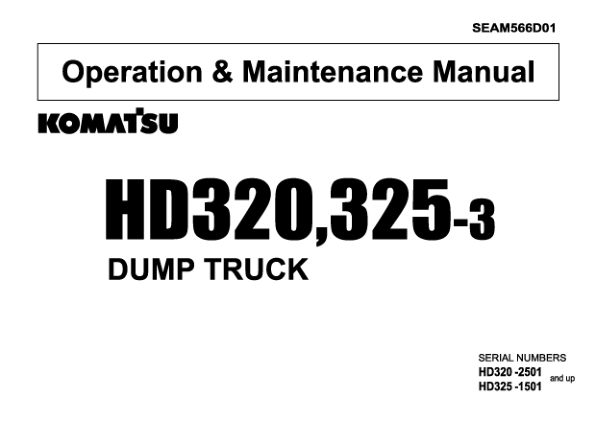 Komatsu HD320 HD325-3 Dump Truck Operation and Maintenance Manual SN 2501 1501 and UP