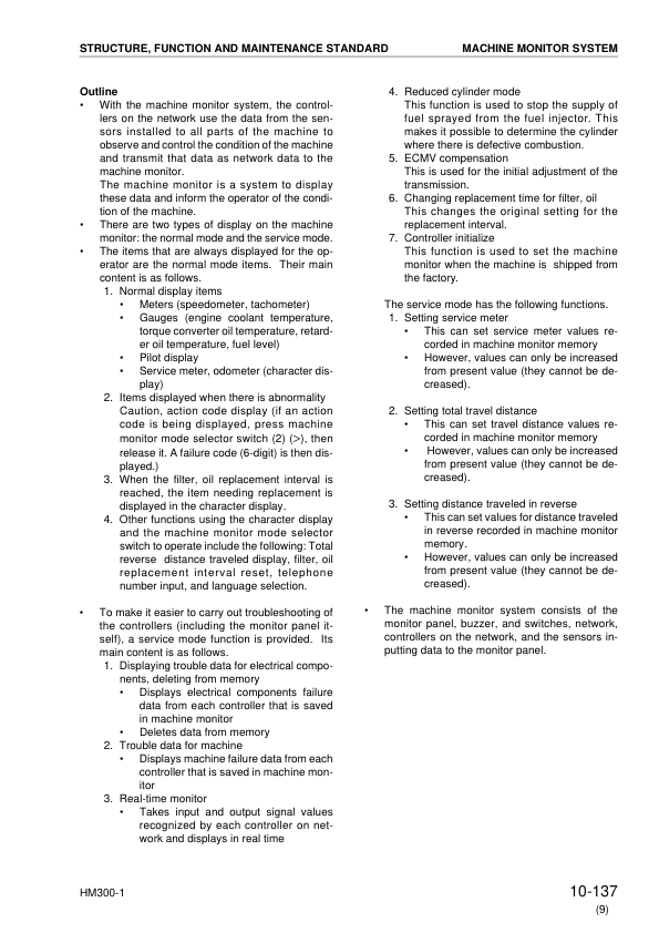 Komatsu HM300-1 Dump Truck Workshop Manual SN 1001 and UP