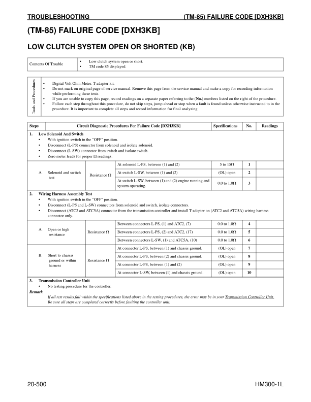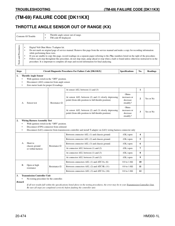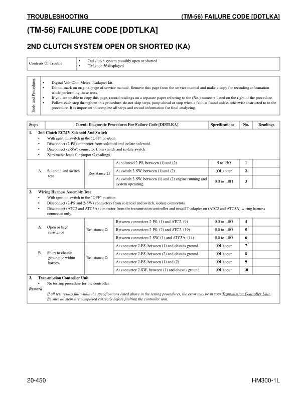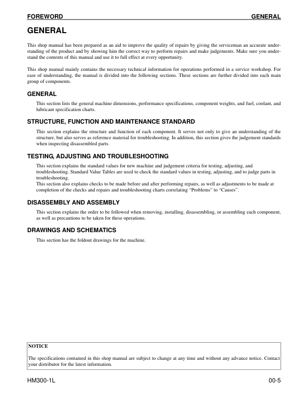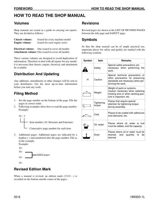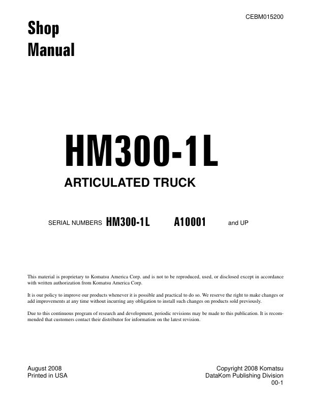 Komatsu HM300-1L Dump Truck Workshop Manual SN A1001 and UP