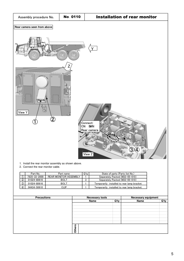 Komatsu HM300-3 Dump Truck Field Assembly Instruction SN 3001 and UP