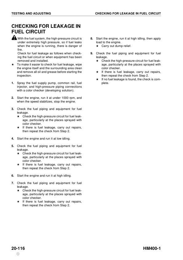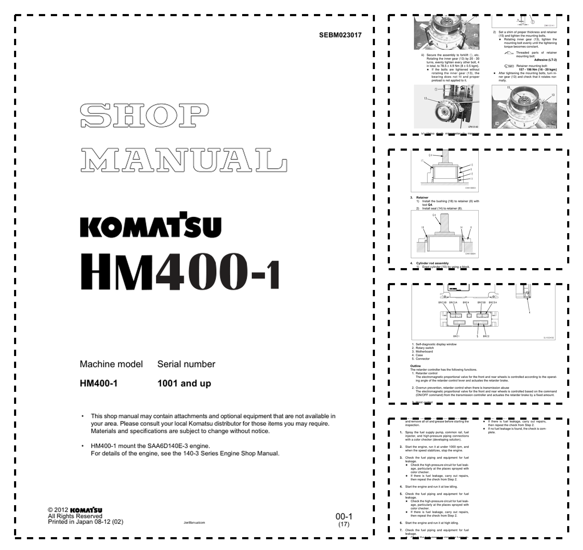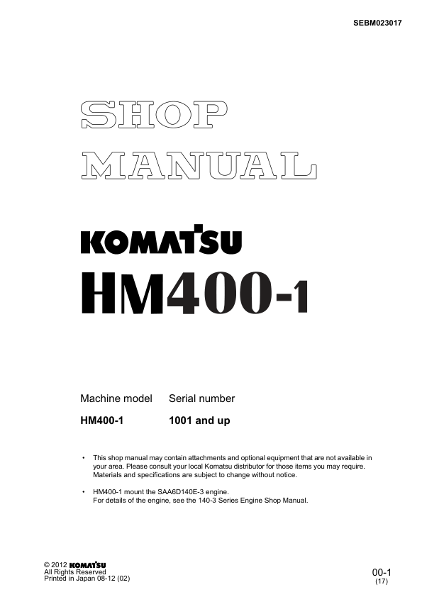Komatsu HM400-1 Dump Truck Workshop Manual SN 1001 and UP