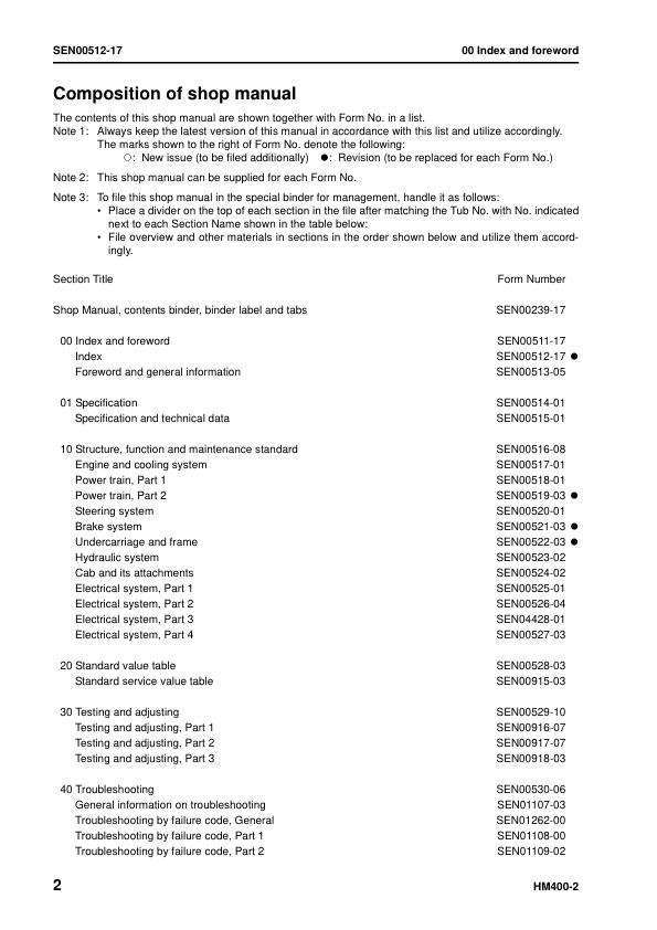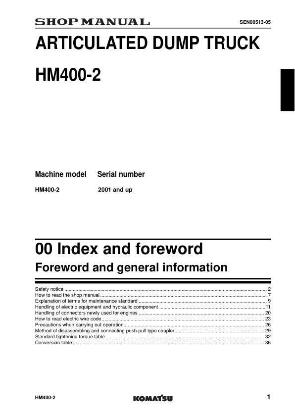 Komatsu HM400-2 Dump Truck Workshop Manual SN 2001 and UP
